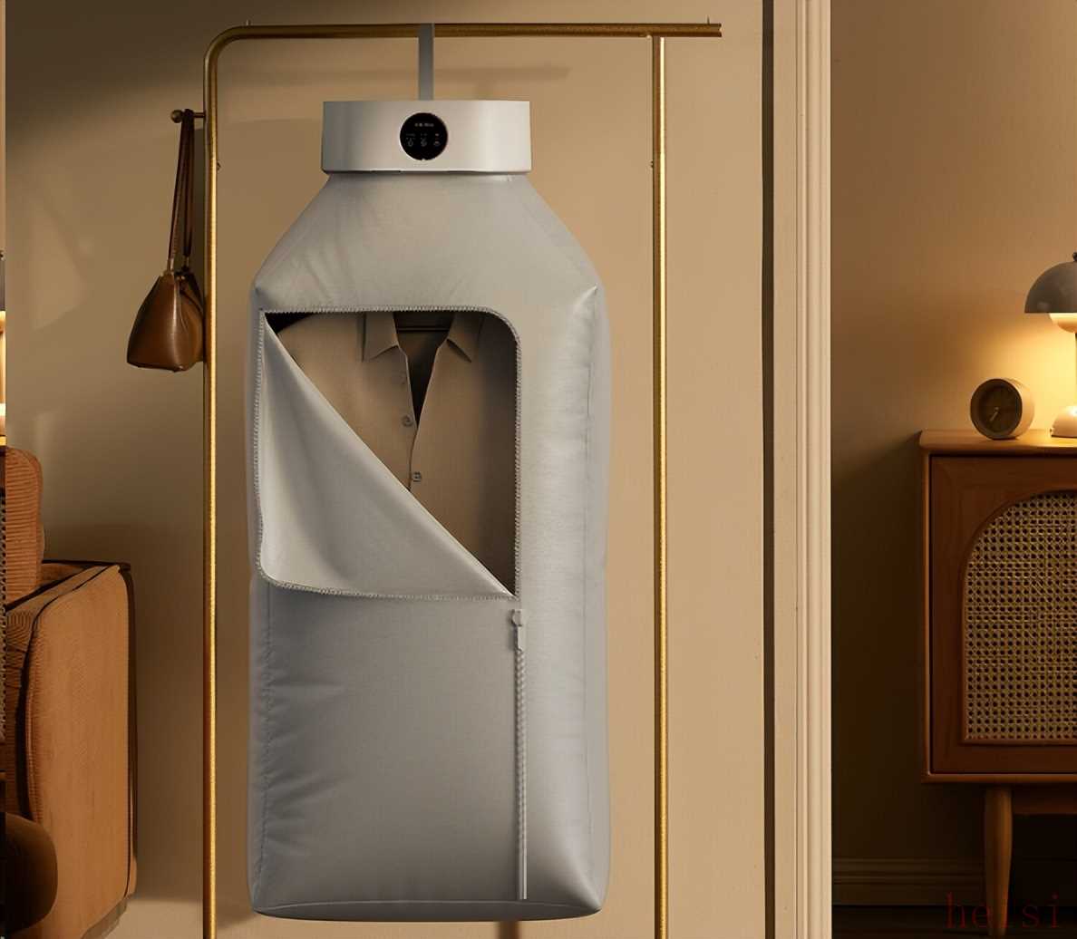 懸掛分區(qū):它主機(jī)頂部波浪掛鉤能把T恤與襪子隔開,熱風(fēng)沿布罩旋轉(zhuǎn)上升,腋窩與袖口同步受風(fēng),薄衣一小時即可全干。