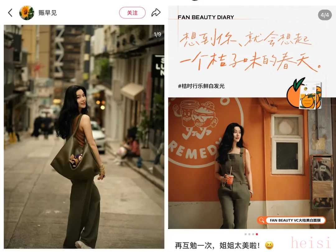 4月11日,范冰冰在小紅書發(fā)布了一組商業(yè)向的街拍大片,為自己品牌旗下新品VC大桔美白面膜進(jìn)行預(yù)熱。在筆記中,她表示“歡迎來互勉!沒有誰可以制定標(biāo)準(zhǔn),只要你準(zhǔn)備好了,都能有收獲”,并在末尾艾特了這組大片的攝影師@賑早見。目前,這條筆記收獲了2.5萬次點(diǎn)贊、1.3萬條評論。