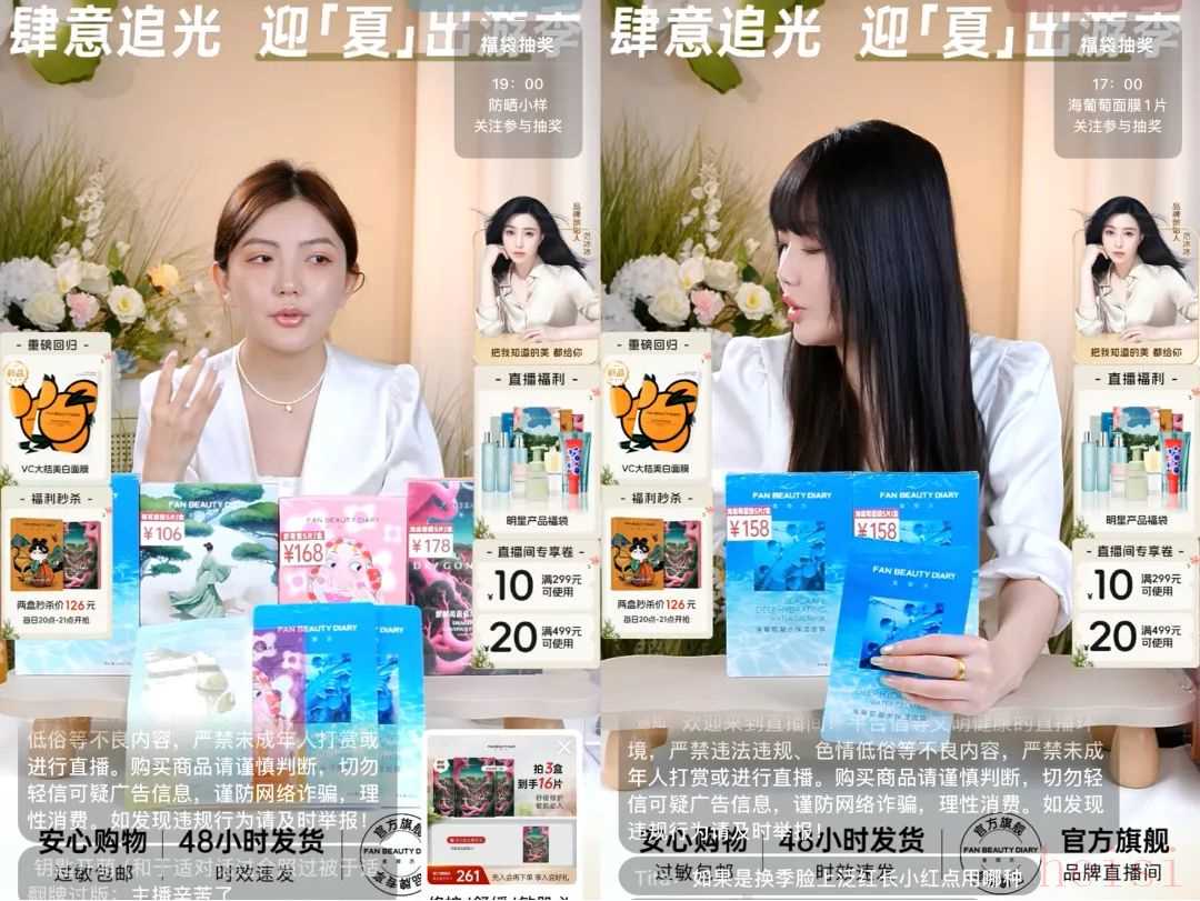 比如,2021年在抖音、快手開設(shè)品牌自播間,并推出微信私域商城,提高轉(zhuǎn)化效率及復(fù)購率等。蟬媽媽數(shù)據(jù)顯示,在抖音,@Fan Beauty Diary官方帳號 與@Fan Beauty Diary直播間 均有開設(shè)直播。最近30天內(nèi),前者GMV達(dá)到1000W~2500W,后者銷售額達(dá)到250W~500W。