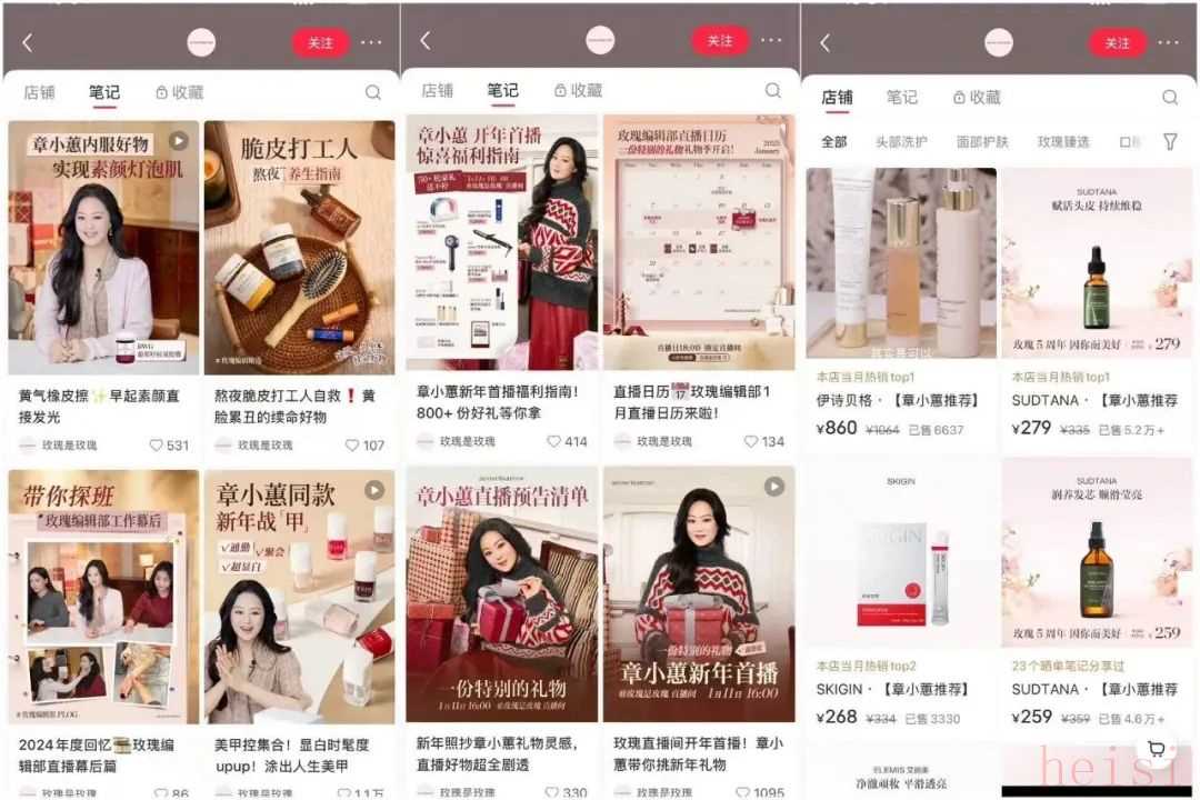 2024年,小紅書618大促期間,F(xiàn)anBeauty還悄悄拿下小紅書品牌榜第一。而同樣是在明星IP影響下成長的品牌,我們很難不去對比另一強(qiáng)勁對手,章小蕙的“玫瑰是玫瑰”——雖然從本質(zhì)上講,“玫瑰是玫瑰”其實(shí)是章小蕙選品背書下的品牌集合,但我們?nèi)钥梢越璐松晕⑻接懴旅餍瞧放圃谛〖t書的運(yùn)營之道。