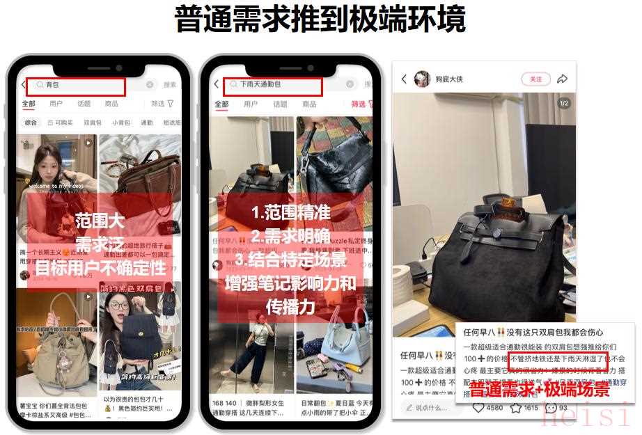 比如,將普通的收納需求,放到“暴雨天通勤”這樣的極端場景中,探討如何讓包里的東西不被雨水泡濕。這樣的內(nèi)容,既能夠為用戶提供實用的解決方案,又能引發(fā)強烈的共鳴,增強筆記的影響力和傳播力