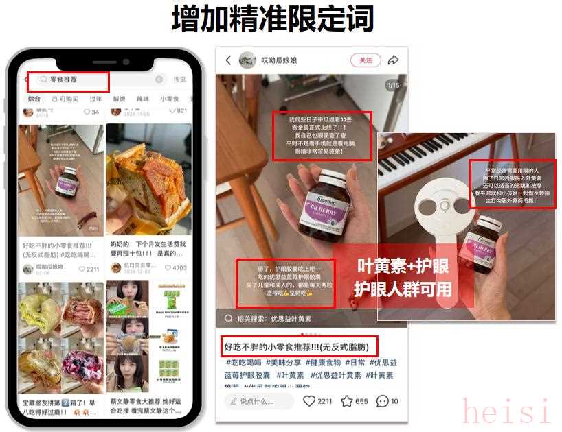 比如,將“零食推薦”改為無糖 + 低卡零食推薦(護眼人群適用)”