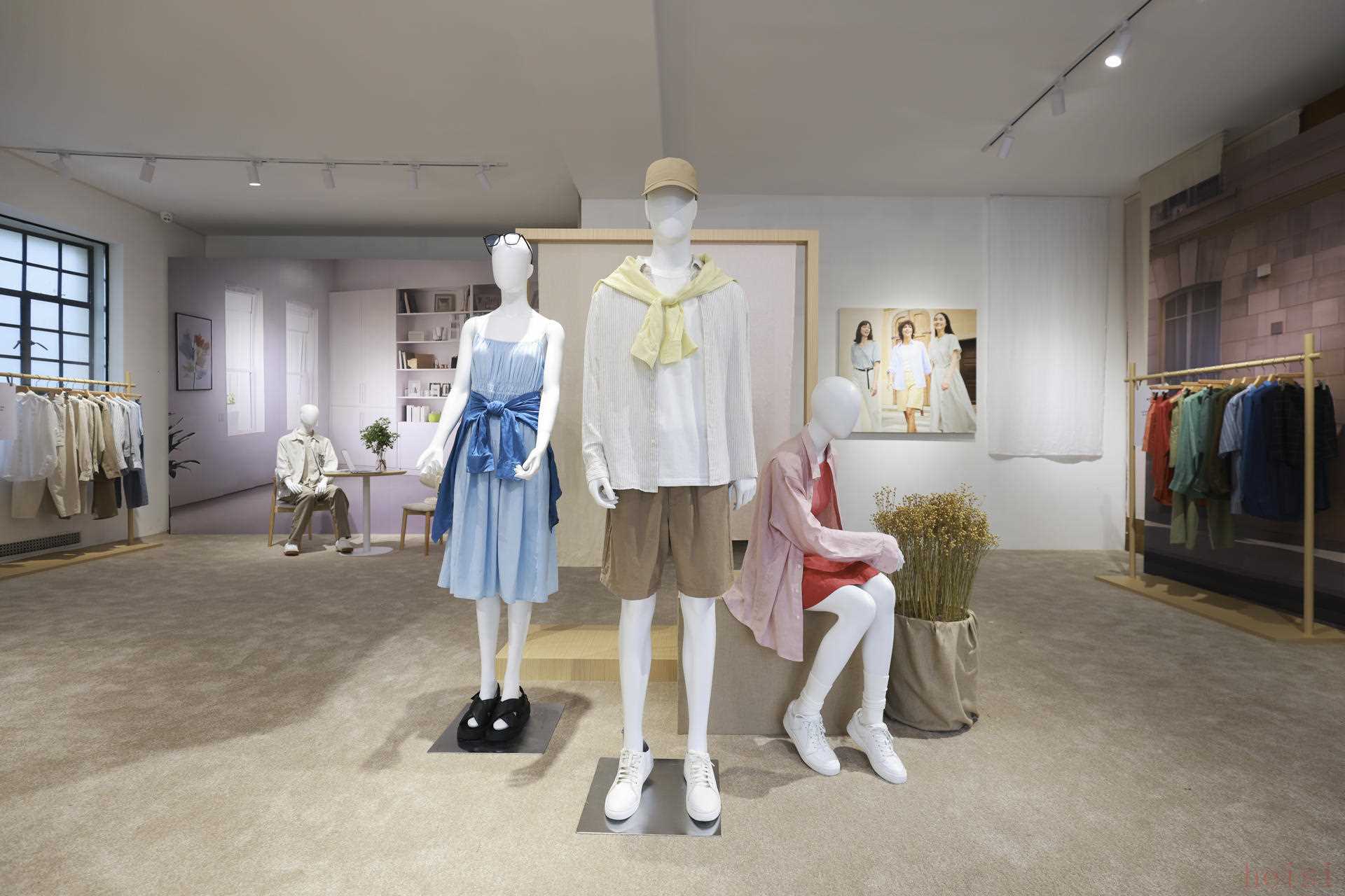 在位于淮海中路的優(yōu)衣庫全球旗艦店內(nèi),這些新品已被擺上了貨架。其包括休閑通勤場景、城市漫游場景、旅行度假場景三大核心場景演繹穿搭。其中,休閑通勤系列選用低飽和中性色,以亞麻特有的肌理感詮釋都市精英的自信優(yōu)雅;城市漫游系列則通過同色系疊穿法則展現(xiàn)自在慵懶氣質(zhì);旅行度假系列采用春夏自然配色,明快色調(diào)與寬松剪裁共同營造出假日的閑適氛圍。
