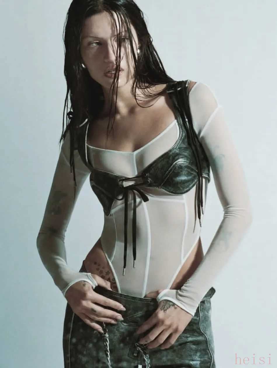 Kendall,Hailey和金小妹則集體愛上KNWLS網(wǎng)紗單品,朦朧透視加上緊身衣式剪裁,作為頂級網(wǎng)紅辣妹,她們對奪人眼球這件事簡直手拿把掐。