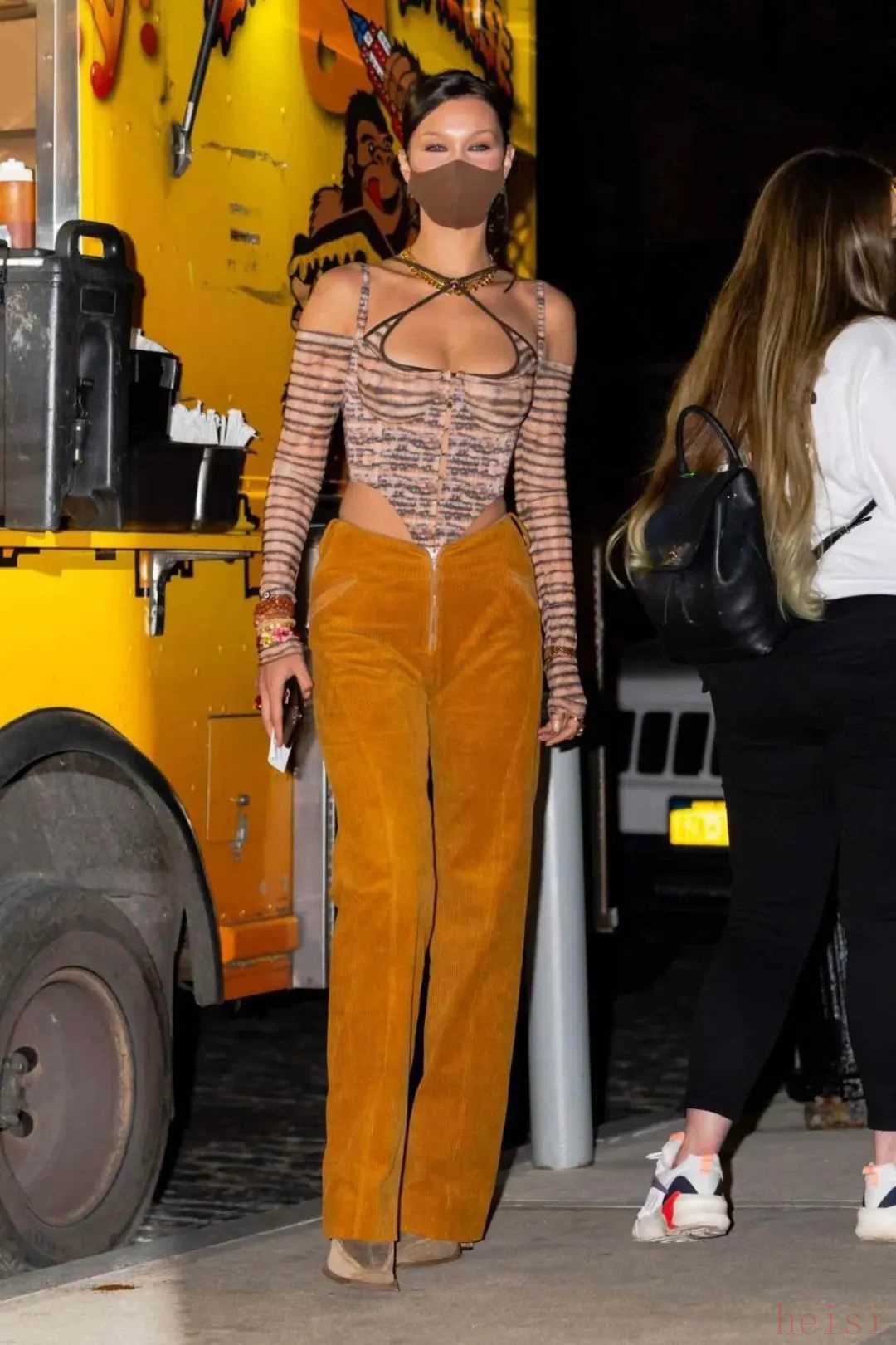 Bella作為帶火KNWLS的第一人,就穿過很多KNWLS的緊身上衣,富有千禧感的復(fù)古辣,使其從此定下“時髦小姨”的美譽(yù)。