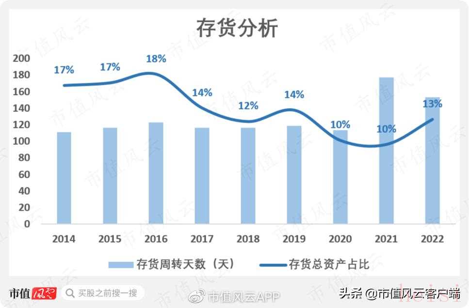 此外,2021和2022財(cái)年的存貨周轉(zhuǎn)天數(shù)分別達(dá)到了177天和153天,較往年有較大幅度提升。