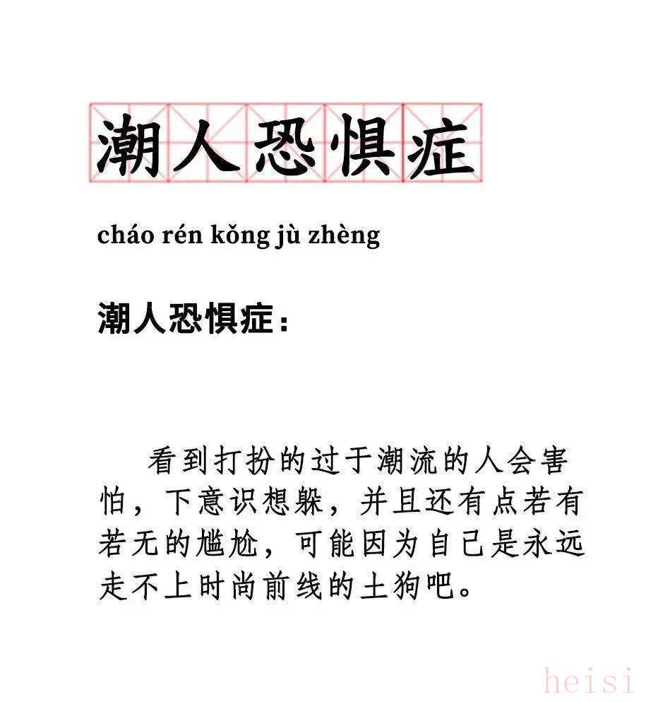 ? 我感覺我同時有潮人恐懼癥和人潮恐懼癥,所以類似夜店和電音節(jié)。人多又全是潮人的地方我巨害怕。