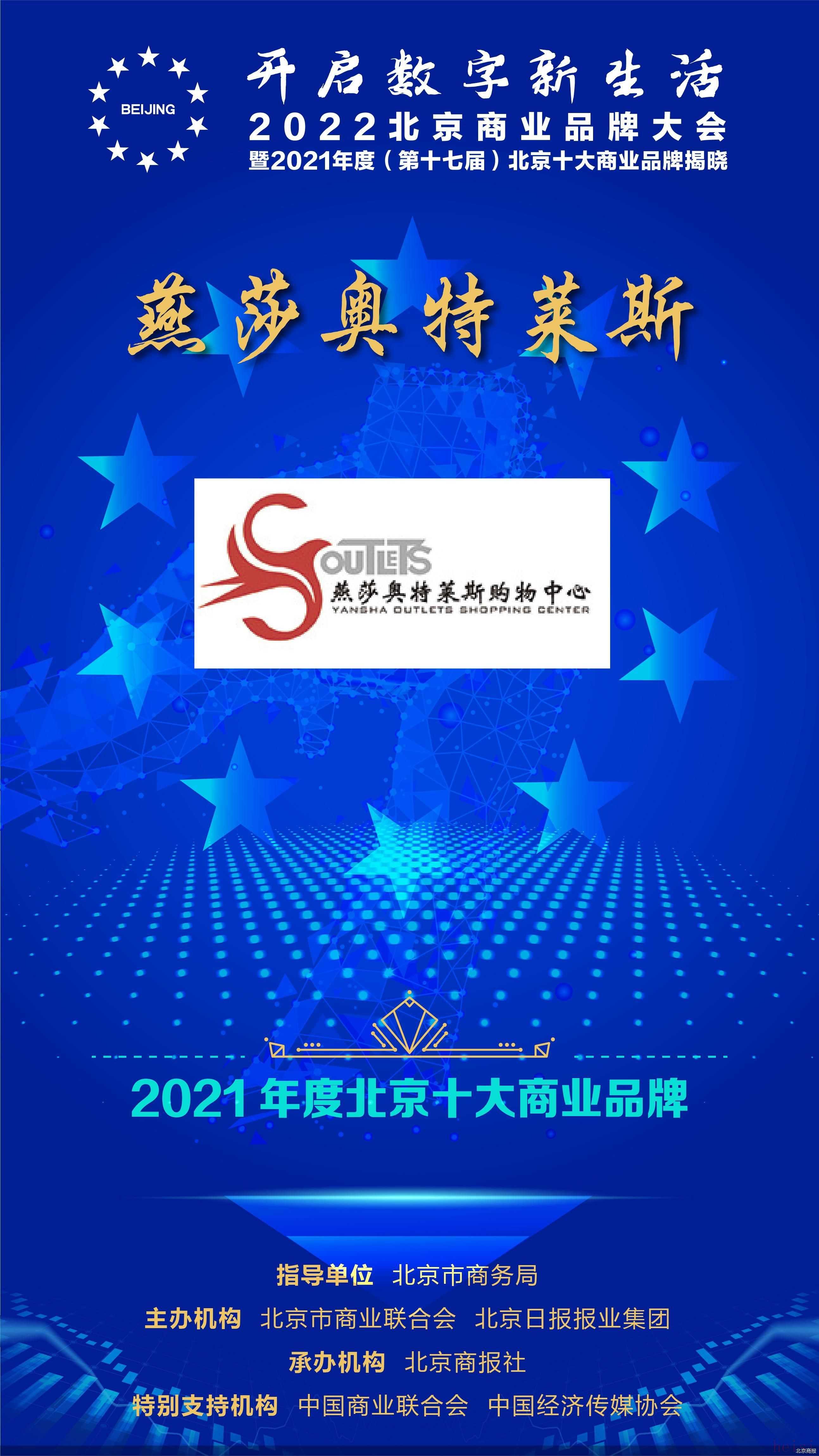 作為本屆活動的重頭戲——“北京商業(yè)奧斯卡”、一年一度的北京十大商業(yè)品牌評選也正式揭曉。燕莎奧特萊斯成功問鼎“2021年度北京十大商業(yè)品牌”。