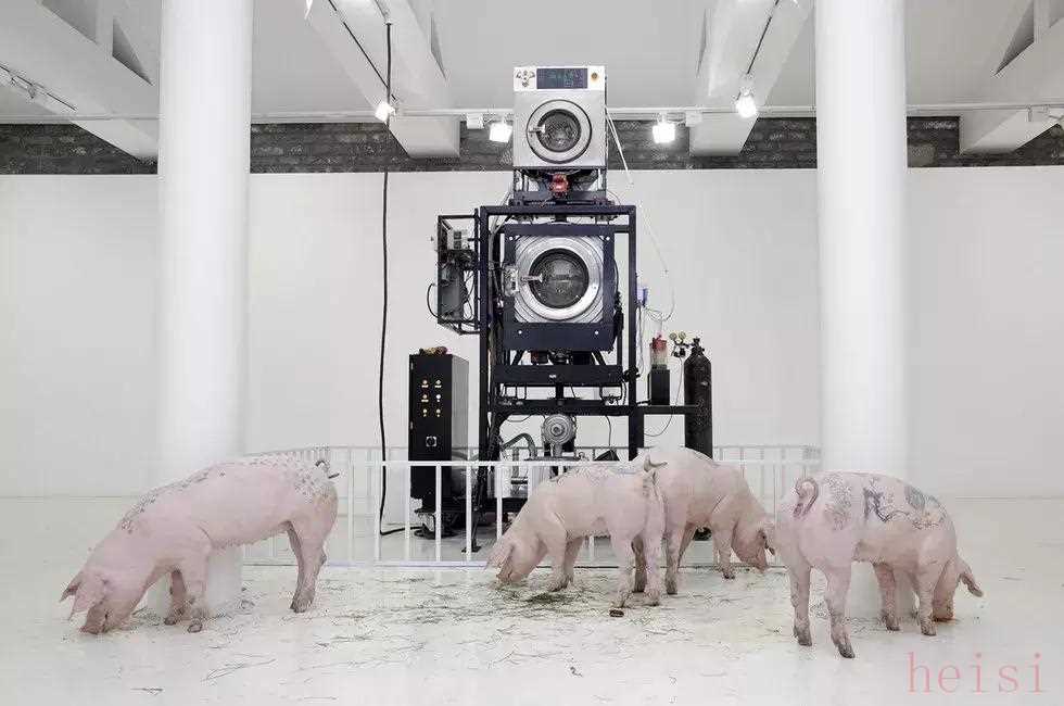 或者,這些豬會(huì)以活著的身份直接參展。威姆一次藝術(shù)展用了八九頭豬,他稱之為 “一件不斷成長(zhǎng)的藝術(shù)品”。