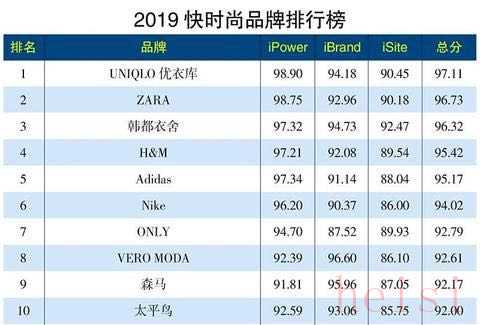 近日,《互聯(lián)網(wǎng)周刊》和eNet研究院聯(lián)合發(fā)布2019快時(shí)尚品牌排行榜。該榜單統(tǒng)計(jì)了150個(gè)快消品時(shí)尚品牌,其中優(yōu)衣庫(kù)、ZARA和韓都衣舍位列前三,在前十的排名里,后七位分別是H&M、Adidas、Nike、ONLY、VERO MODA、森馬和太平鳥(niǎo)。對(duì)比2018年榜單前五的排名,Adidas從第二名退居第五名,韓都衣舍擠入前三,ZARA從第三躍居第二,優(yōu)衣庫(kù)與H&M排名不變。