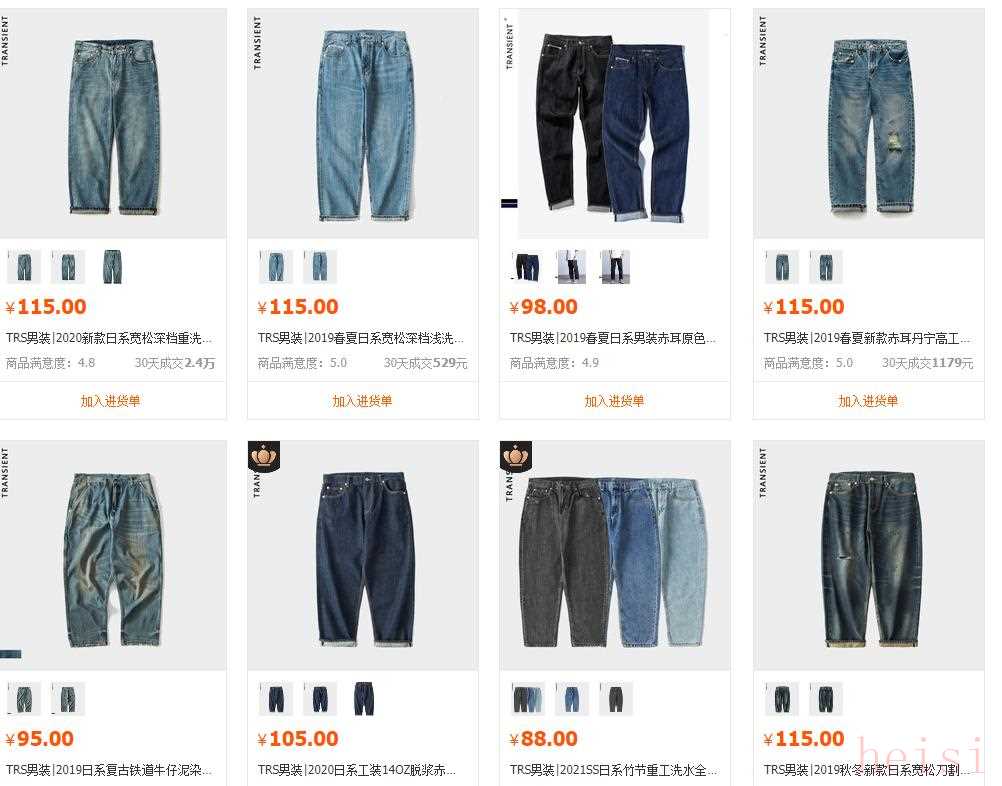 主要服飾風(fēng)格是日潮風(fēng)格,款式偏寬大。 旗下牛仔褲產(chǎn)品也非常多, 可以自行選擇。