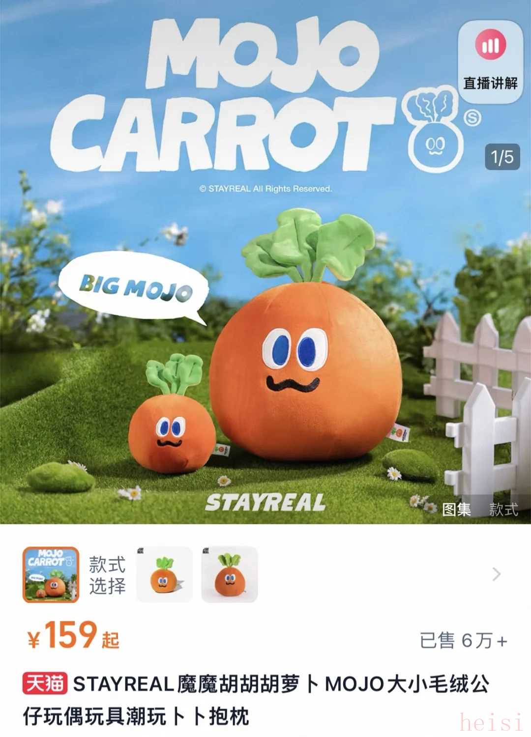 五月天的衍生品牌STAYREAL和胡蘿卜造型IP“卜卜”已經(jīng)是電商熱賣(mài)榜上的常駐嘉賓。去年雙11,卜卜毛絨玩具登榜天貓毛絨玩具暢銷(xiāo)榜TOP3,僅次于JELLYCAT 和迪士尼。