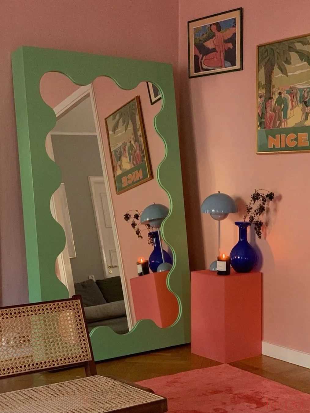 除了波浪形的樣式,最讓人心動的還是它清新的顏色,可以把家的一角襯托得溫暖而柔和。家中不方便放置落地鏡的,還可以選擇小一點(diǎn)的size,作為梳妝鏡使用。
