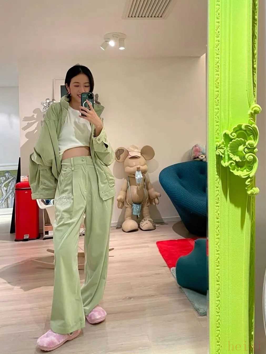 周雨彤自拍中反復(fù)出現(xiàn)的這個(gè)熒光綠色鏡子,復(fù)古的巴洛克浮雕搭配上前衛(wèi)的熒光色,為她的造型增色不少。這面鏡子是來自英國做植絨涂層的品牌Thomas & Vines。