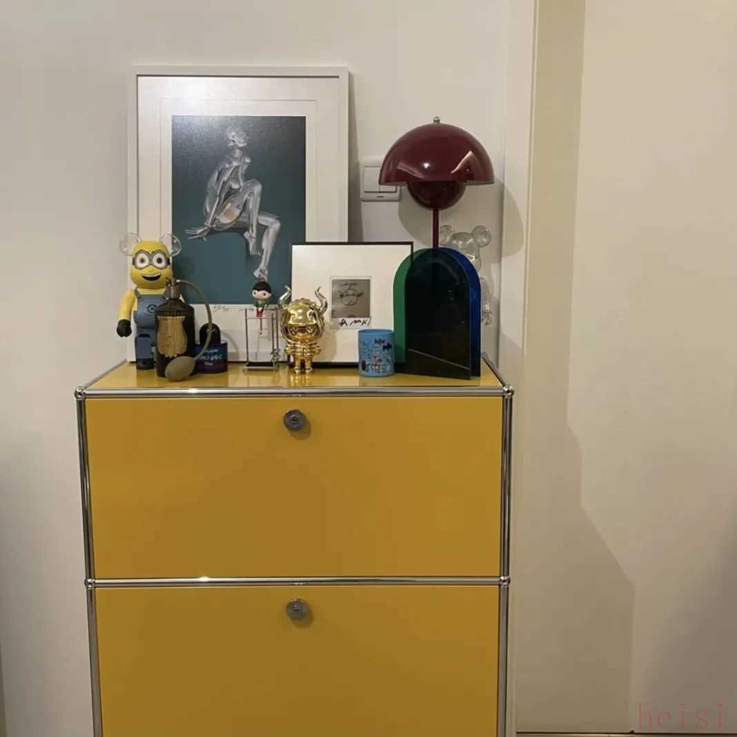 她家另一組電視柜+角柜是來自USM Haller的組合柜,極具品牌辨識度的金屬邊和模塊化的顏色組合,被稱為家居界的樂高。