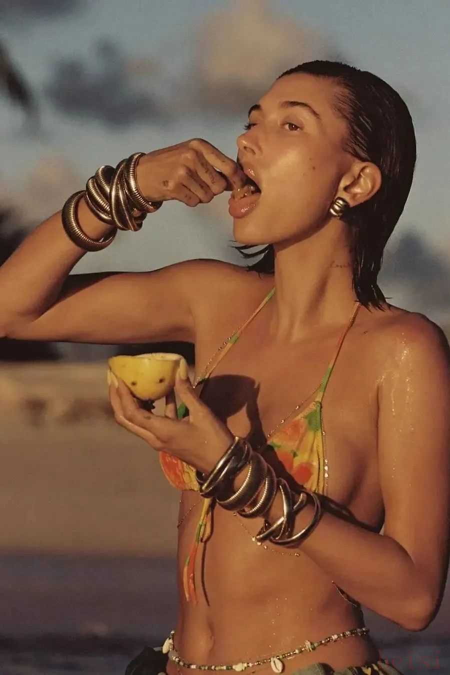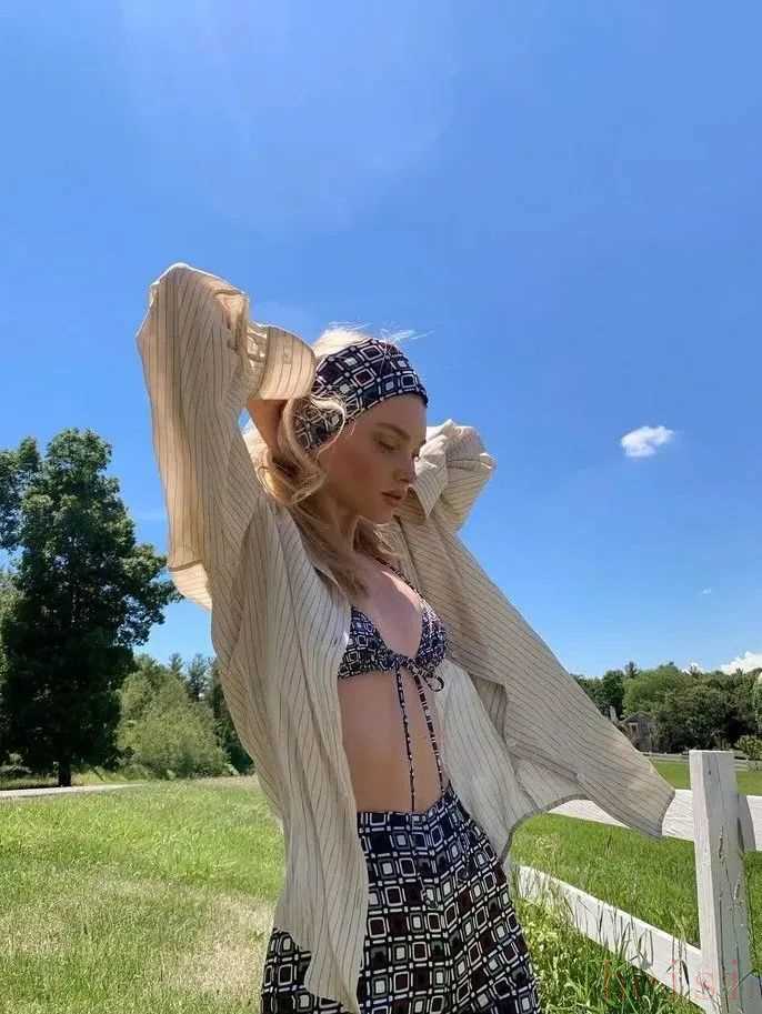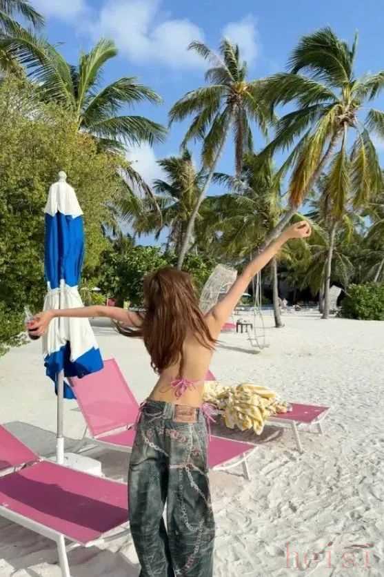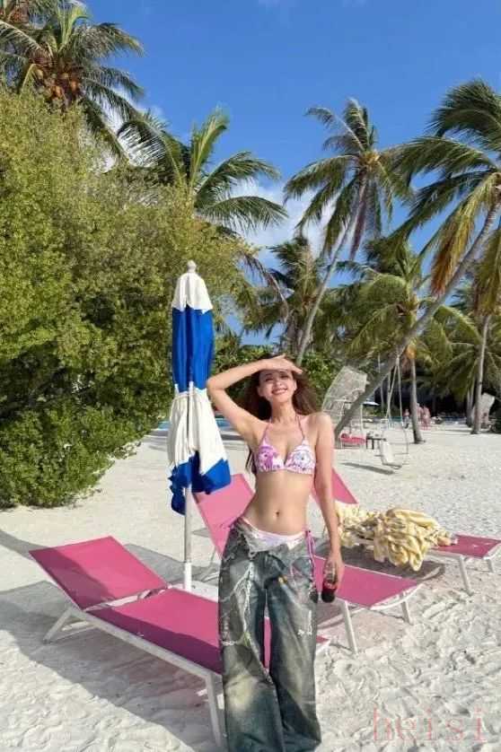 當然,比基尼搭配起來也非常容易。孫怡前一段時間美上熱搜的海邊look同樣令人移不開眼??ㄍㄓ』ū然崾挚蓯?,下半身搭配上做舊水洗牛仔褲,又給整套look增加了街頭感,碰撞出別具一格的時尚火花。