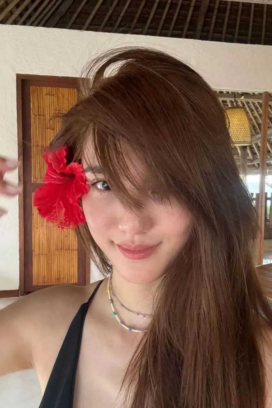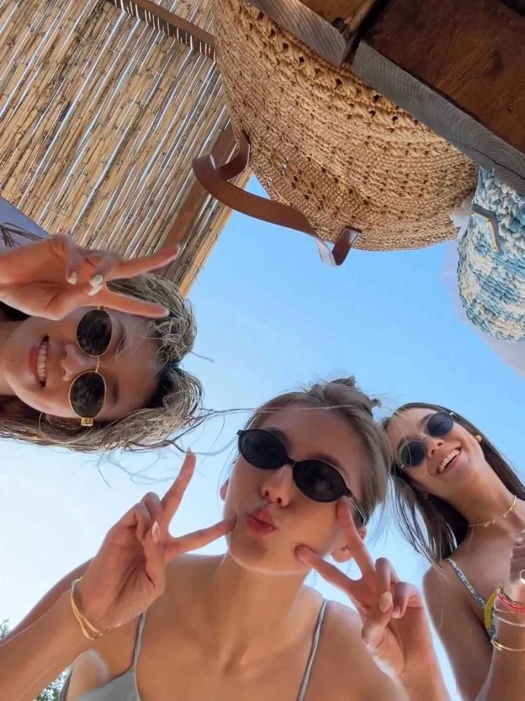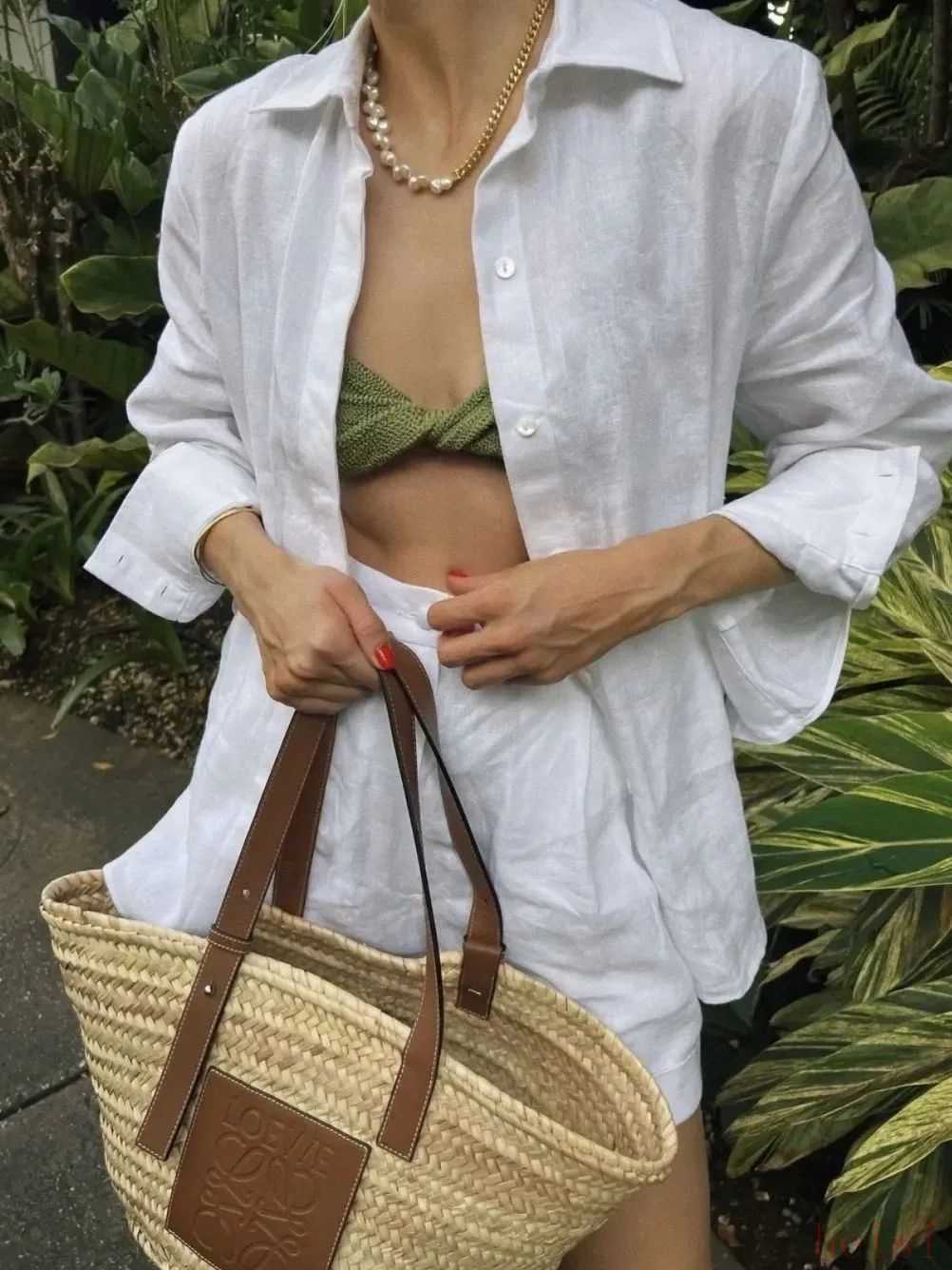 一字肩的泳裝則比較純欲,隨手拎個編織包,松弛感直接溢出屏幕,普通人也能照搬去度假。