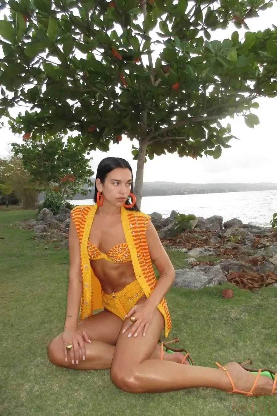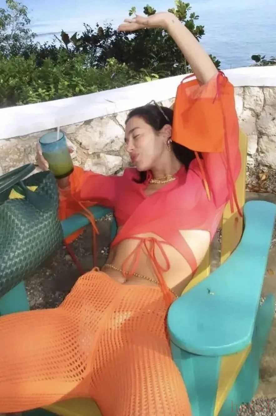 歐美的時髦icon則比較喜歡穿一些顏色飽和度高的比基尼,從Dua Lipa到卡戴珊家族全員都是如此。淺綠、粉紅、寶石藍等亮色系在陽光下很襯托膚色,在大自然里與日光互動怎么都出片。