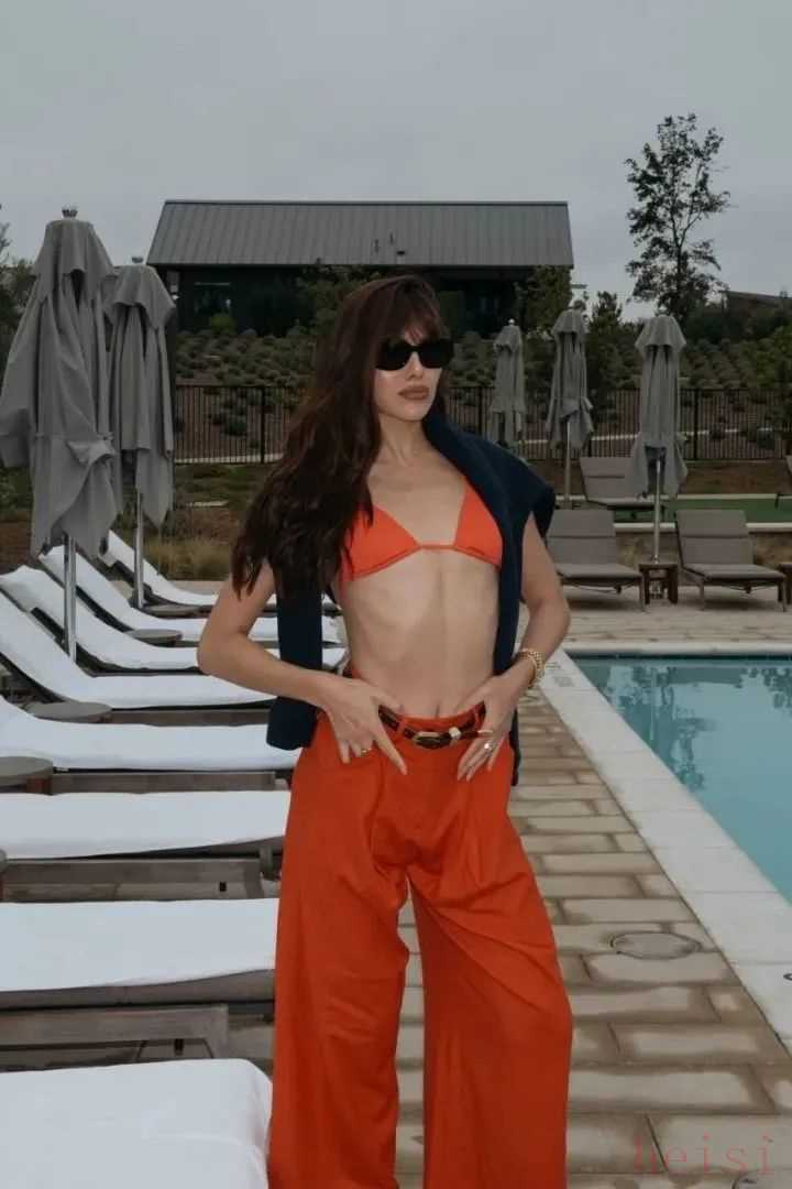 Jennie也常常用比基尼搭配褲裝,盡顯松弛態(tài)度。
