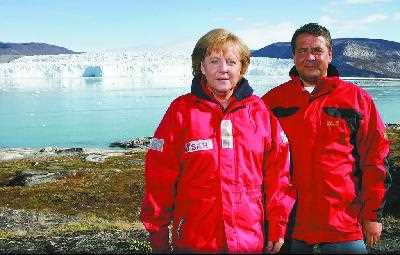 穿著沖鋒衣的默克爾和加布里爾。