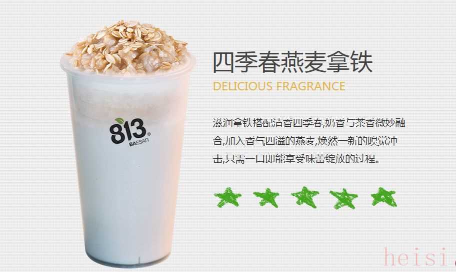 813雖然作為奶茶店,這個名字跟奶茶的結(jié)合不高。但是從取名技巧來看,“813”很好地契合了“芭依珊”的音譯,保持品牌名稱的一致性,方便大眾聯(lián)想到中文品牌名。