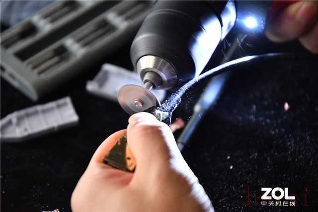 作為真正的暴力測(cè)試,絕不手軟。我們亮出專業(yè)拆解工具,包括電鉆、磨片、鋼片、螺絲刀、護(hù)目鏡、刀片等設(shè)備。首先,我們對(duì)FIBBRFlash144光纖DP線的接頭處進(jìn)行拆解,由于其接頭處非常牢固,并不能像普通線材那樣可以用刀拆解,所以用電鉆更有把握。