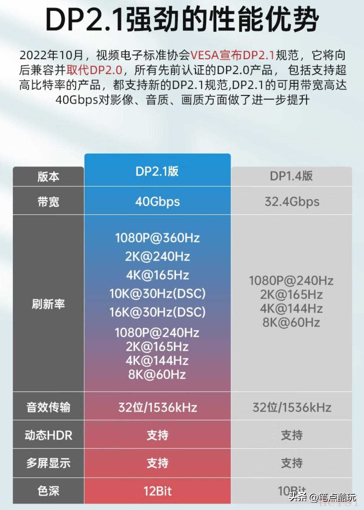 一圖看懂DP1.4版和2.1有啥區(qū)別: