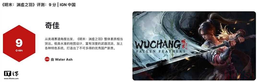 14、《明末:淵虛之羽》獲 IGN 中國(guó) 9 分,上線Steam差評(píng)如潮7 月 23 日消息,國(guó)產(chǎn)類魂動(dòng)作游戲《明末:淵虛之羽》的媒體評(píng)測(cè)已正式解禁,本作在 Metacritic 平臺(tái) PC 版均分 73 分(13 家媒體)、Xbox 版本均分 88 分(5 家媒體)、PS5 版本均分 75 分(52 家媒體)。而 IGN 中國(guó)給予本作 9 分評(píng)價(jià)(IGN 本部給予 8 分評(píng)價(jià)),認(rèn)為本作擁有快節(jié)奏、動(dòng)態(tài)且靈活的戰(zhàn)斗系統(tǒng),以及出色的技能樹系統(tǒng),不過(guò)后期 BOSS 戰(zhàn)難度較高。