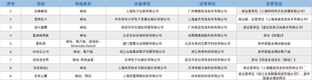 (下滑或點(diǎn)開大圖查看完整版號(hào))此外,7 月共有 9 款游戲獲得審批變更版號(hào)。