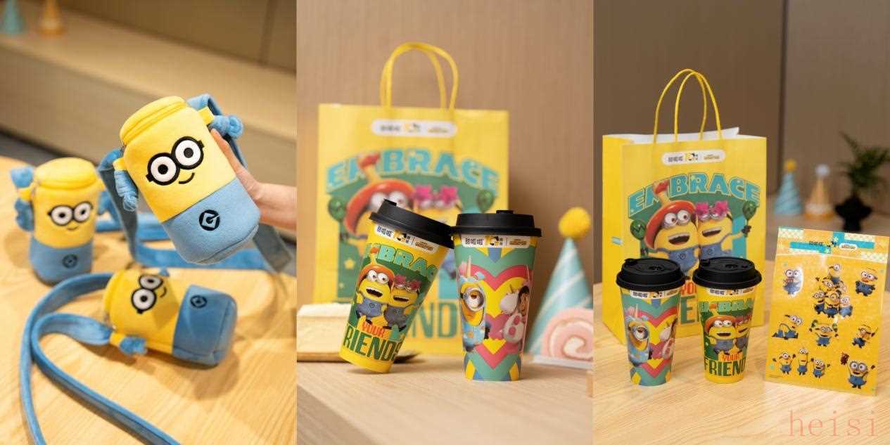 2. "攜手“小黃人大眼萌”":“小黃人”(Minions)是環(huán)球影業(yè)旗下的著名IP,“大眼萌”是對他們可愛、標(biāo)志性的外貌特征(大眼睛)的描述,這里特指以小黃人為核心的聯(lián)名元素。
