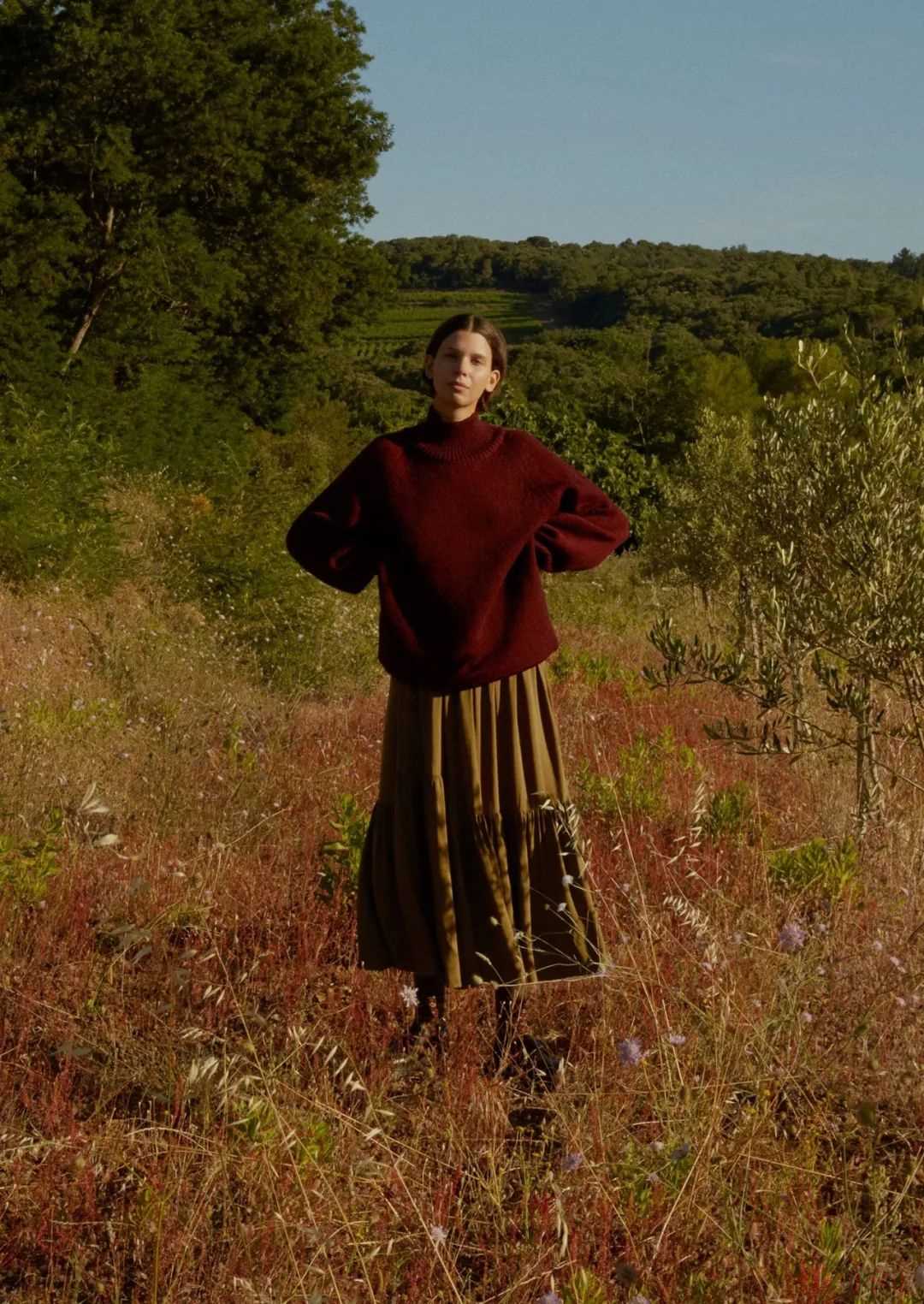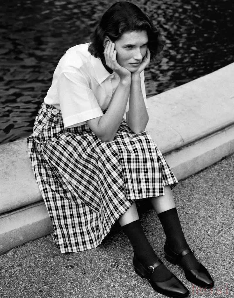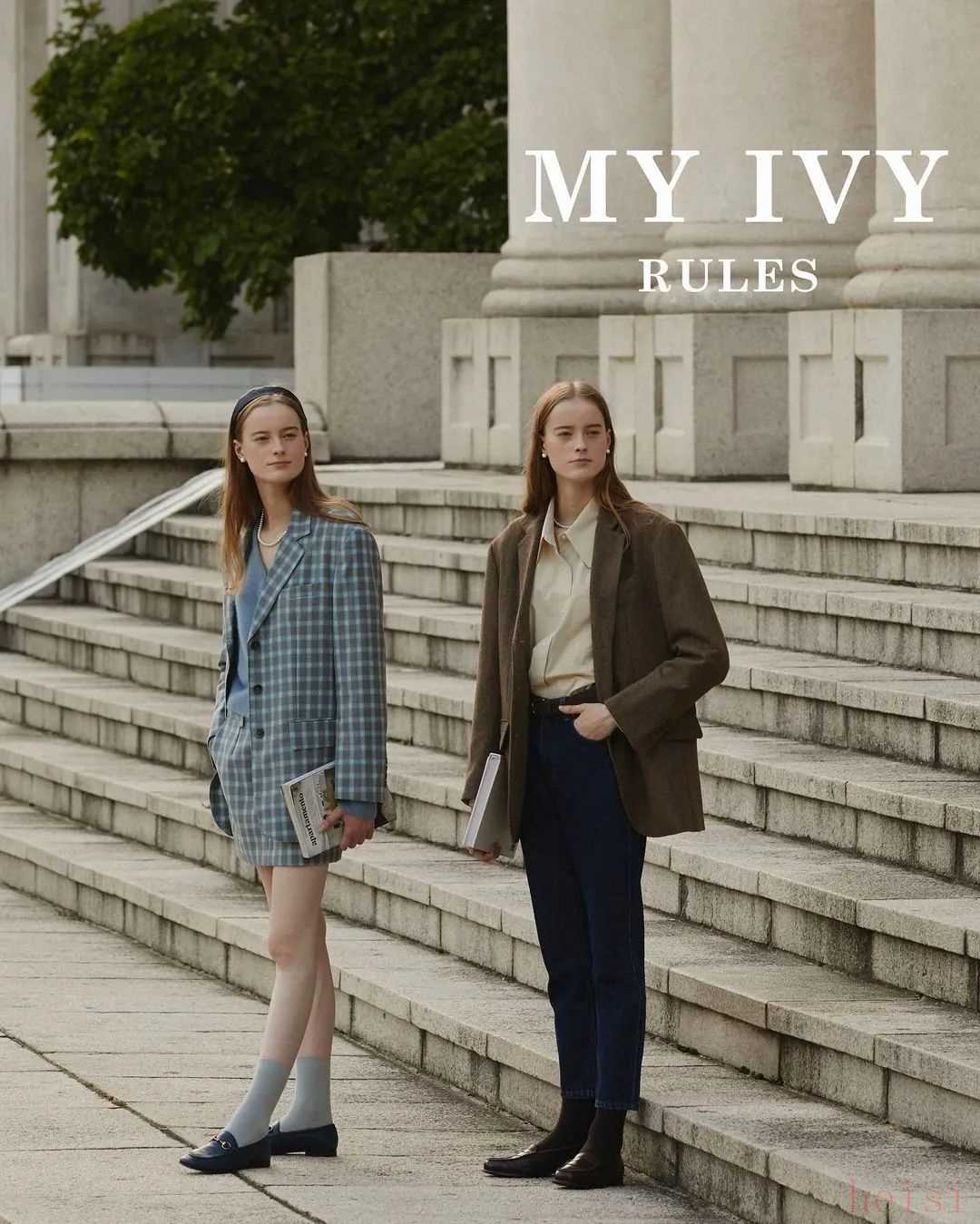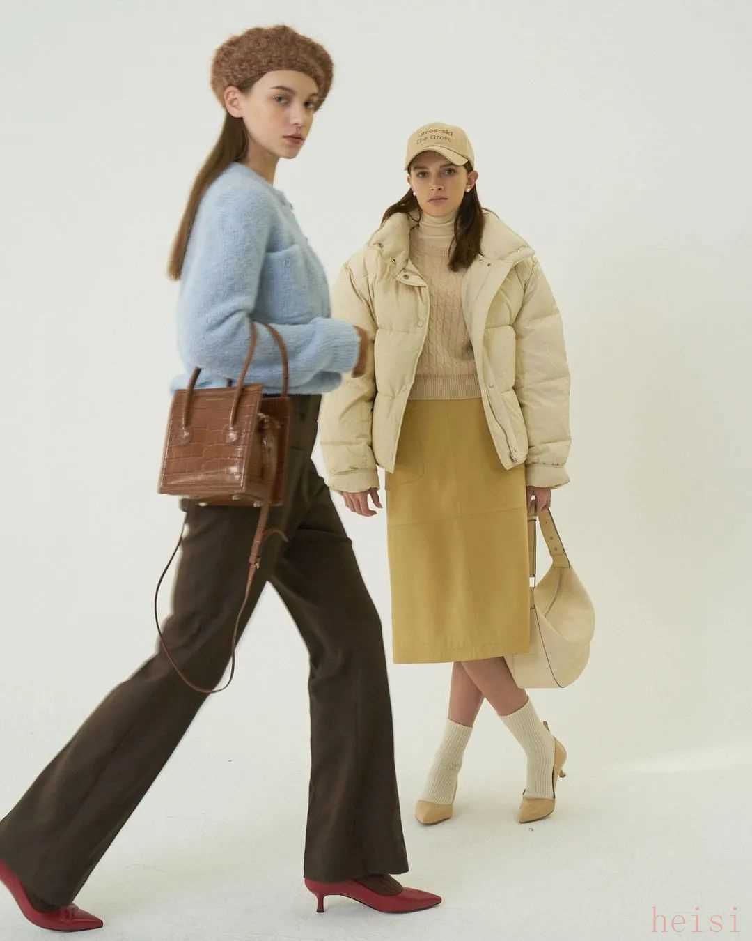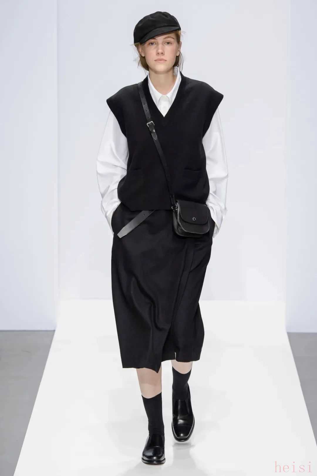 MH也有裙裝,但長(zhǎng)度都是在小腿附近的中長(zhǎng)裙,以百褶裙和壓褶裙這類文藝感比較強(qiáng)的裙子為主。再加上長(zhǎng)襪和小皮鞋,英倫氣息就上來(lái)了。▼