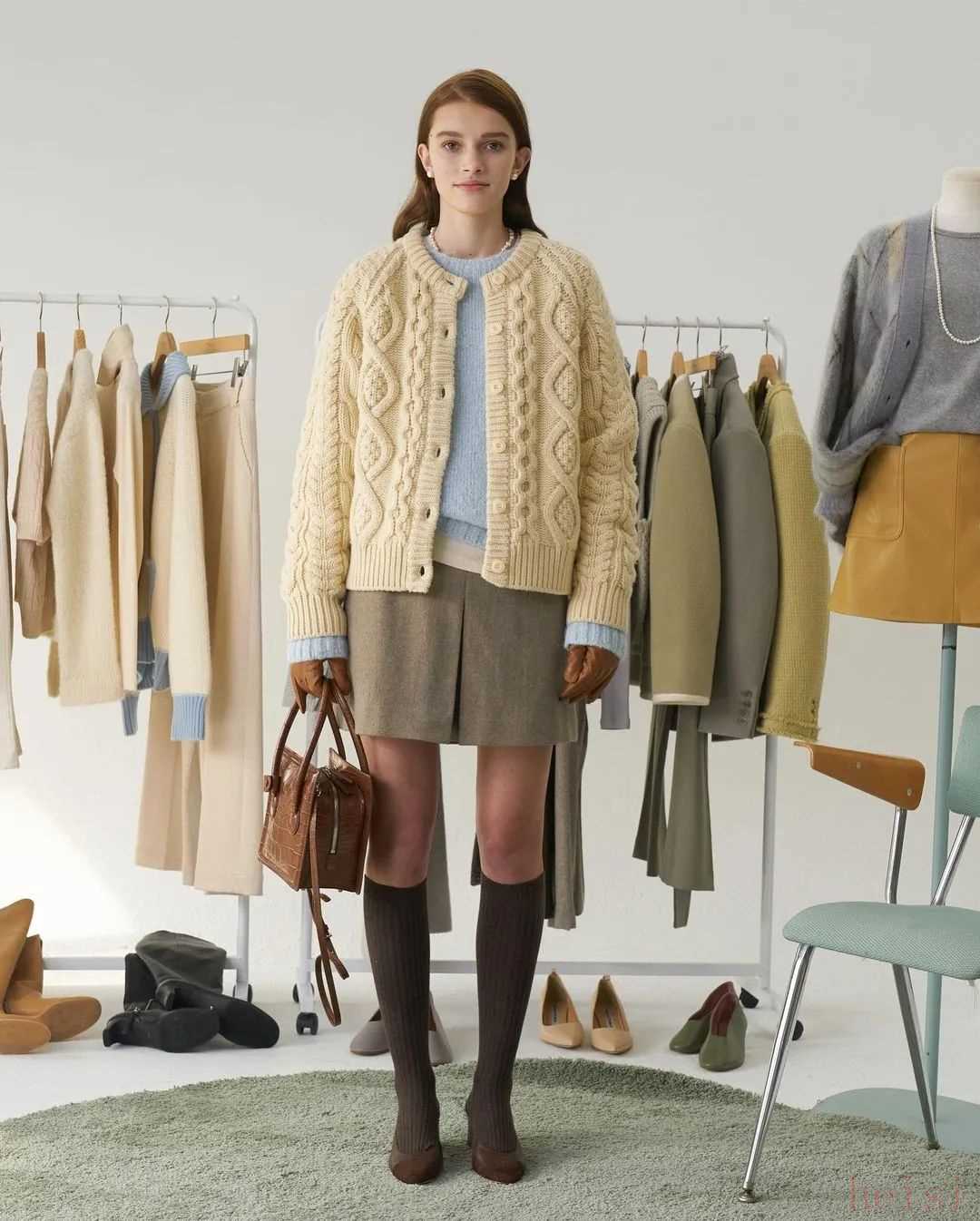 來(lái)看看老奶奶風(fēng)的絞花怎么疊搭不土氣,它和珍珠元素是一對(duì),還可以混搭棒球帽、短裙、闊腿褲這些單品。官網(wǎng)已經(jīng)沒(méi)有了,海淘約879元。▼
