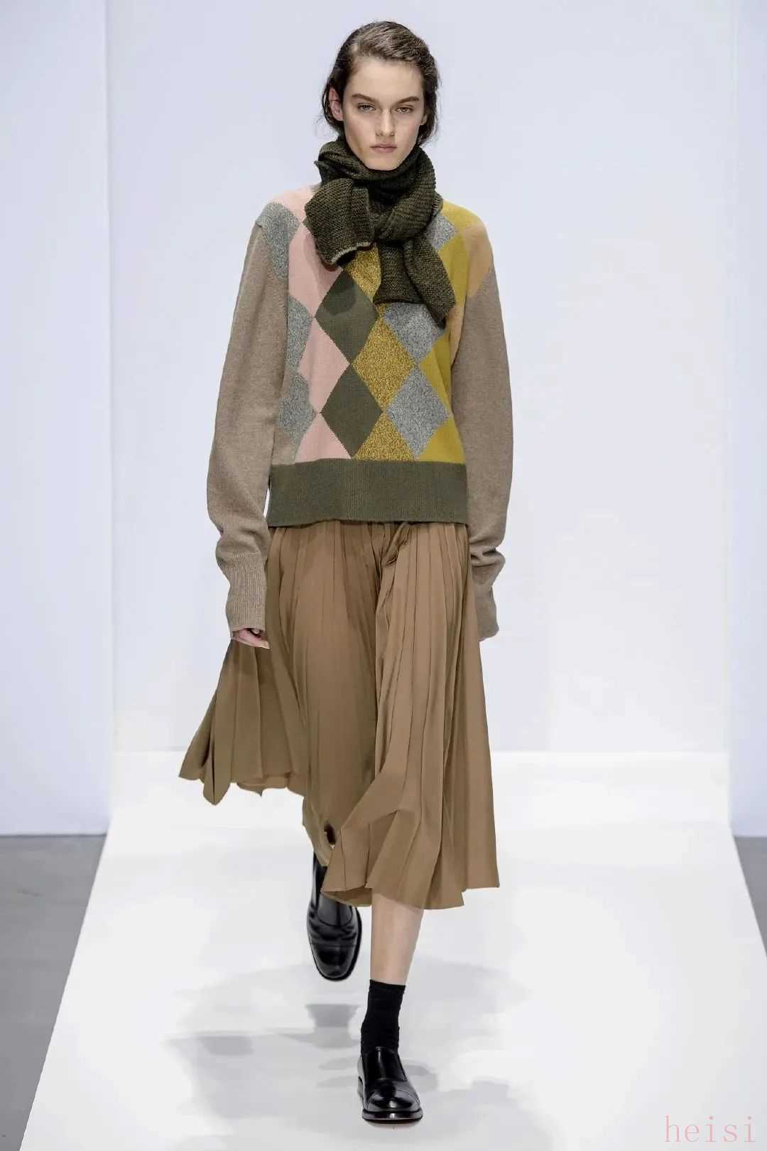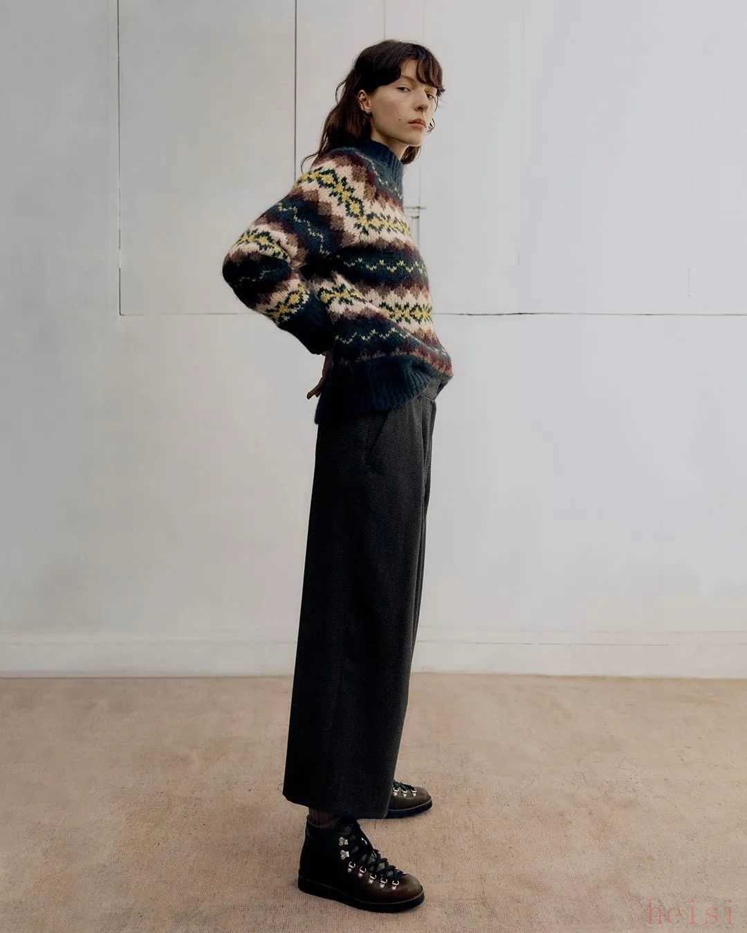 這張其實(shí)都是去年的圖了。費(fèi)爾島毛衣、毛衣背心都可以用來(lái)搭工裝褲。毛衣價(jià)位大概在1500到4000元。▼
