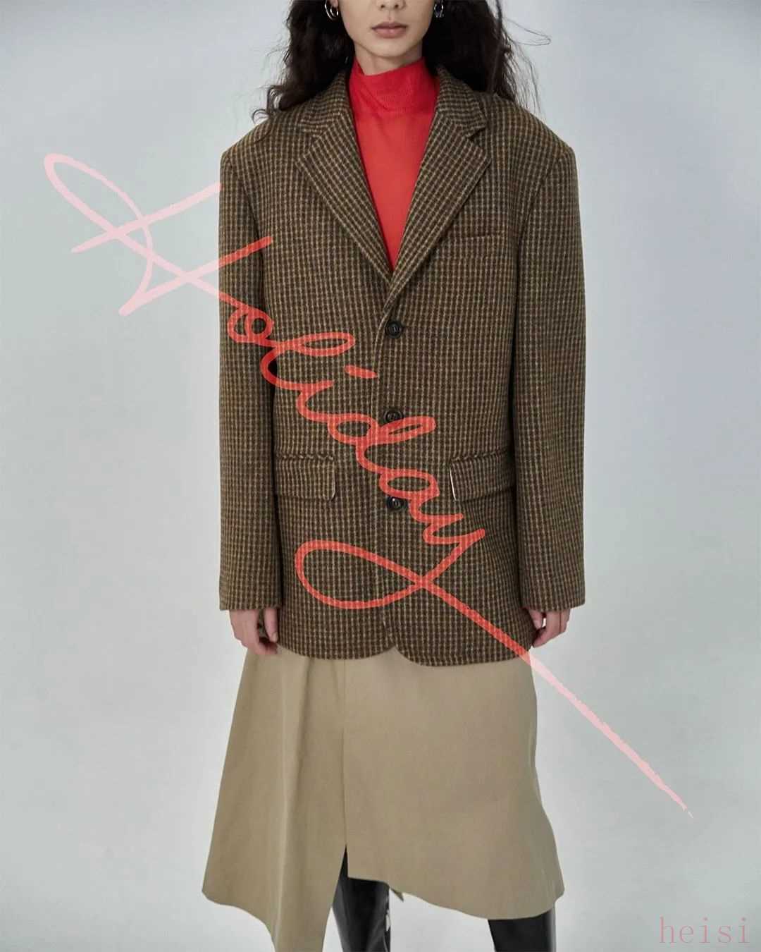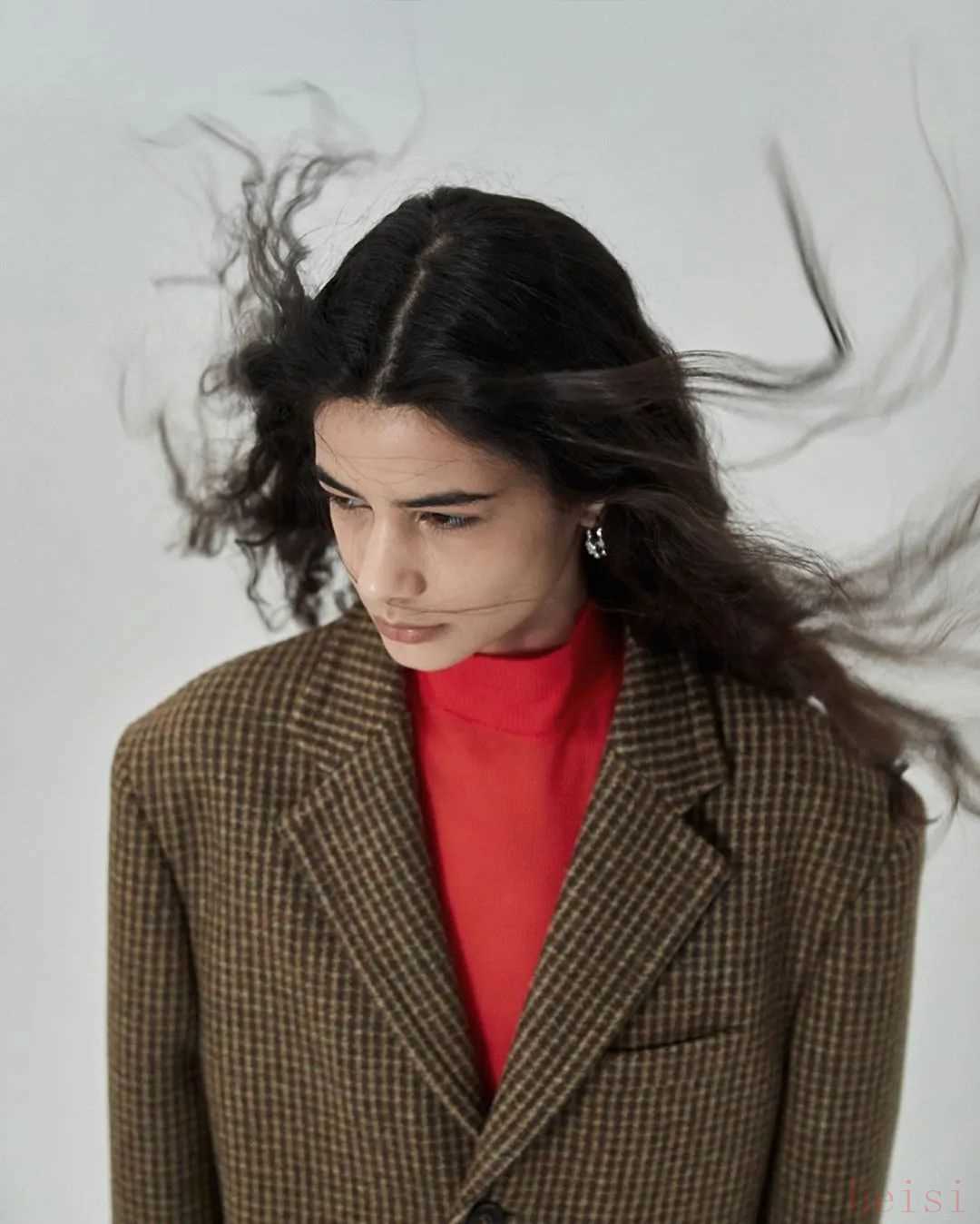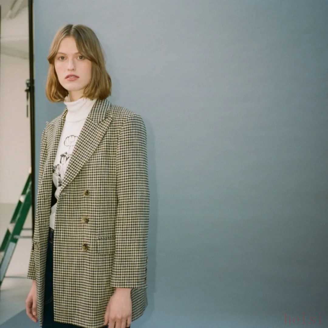 這件格紋西裝小尖領(lǐng)的設(shè)計(jì)比較特別。剪裁挺括,小墊肩就挺適合我這種肩不寬的身材,國(guó)外官網(wǎng)約2738元。▼
