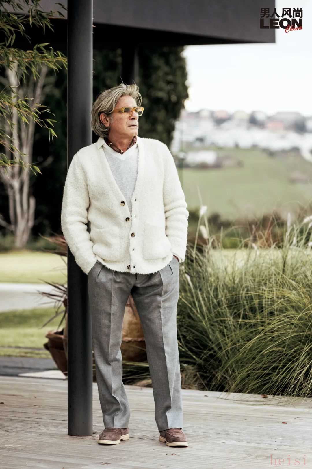 他說:最近我?guī)缀鯖]有穿西裝打領帶,而是用開衫代替夾克西裝,大衣也選擇寬松的。“但是,休閑造型更不能忘了品質。我非常注重面料質量,還會適當添加古典風格的小裝飾。成年人穿休閑裝,如果不注意品位,會很難堪。