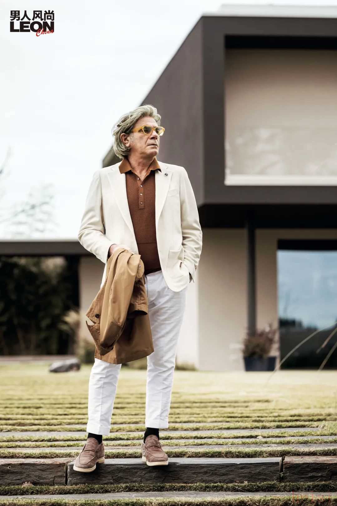 “疫情延長了居家時間,挑選服裝時,也發(fā)生了很多變化。首先是開始喜歡寬松休閑的服裝,舒適柔軟的面料。其次是多用白色、土黃色等自然色。人生是不斷變化的,讓型男著裝更具文雅氣息,也是一場革命吧?!?/p>