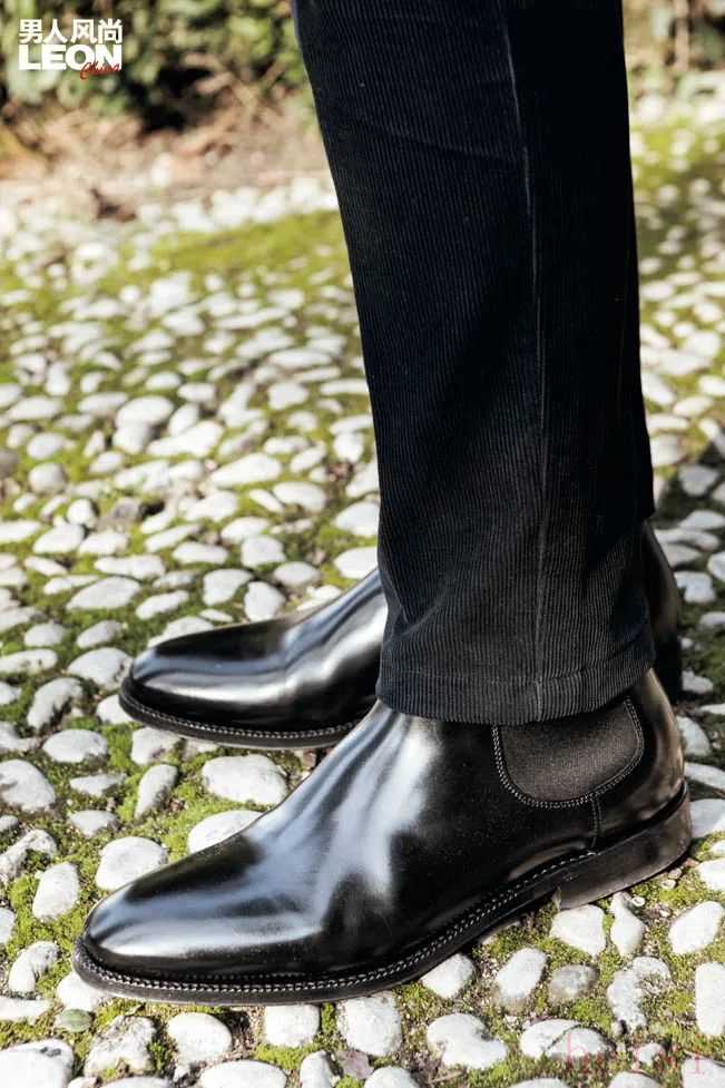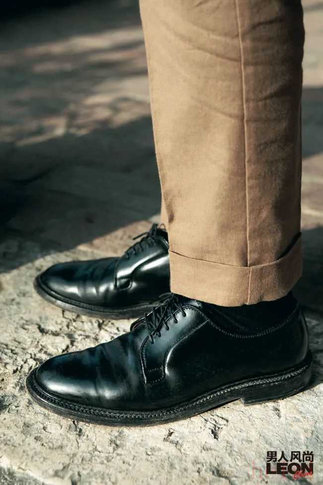鞋子為ALDEN品牌的科爾多瓦皮鞋,全黑色是選擇的關鍵。 3