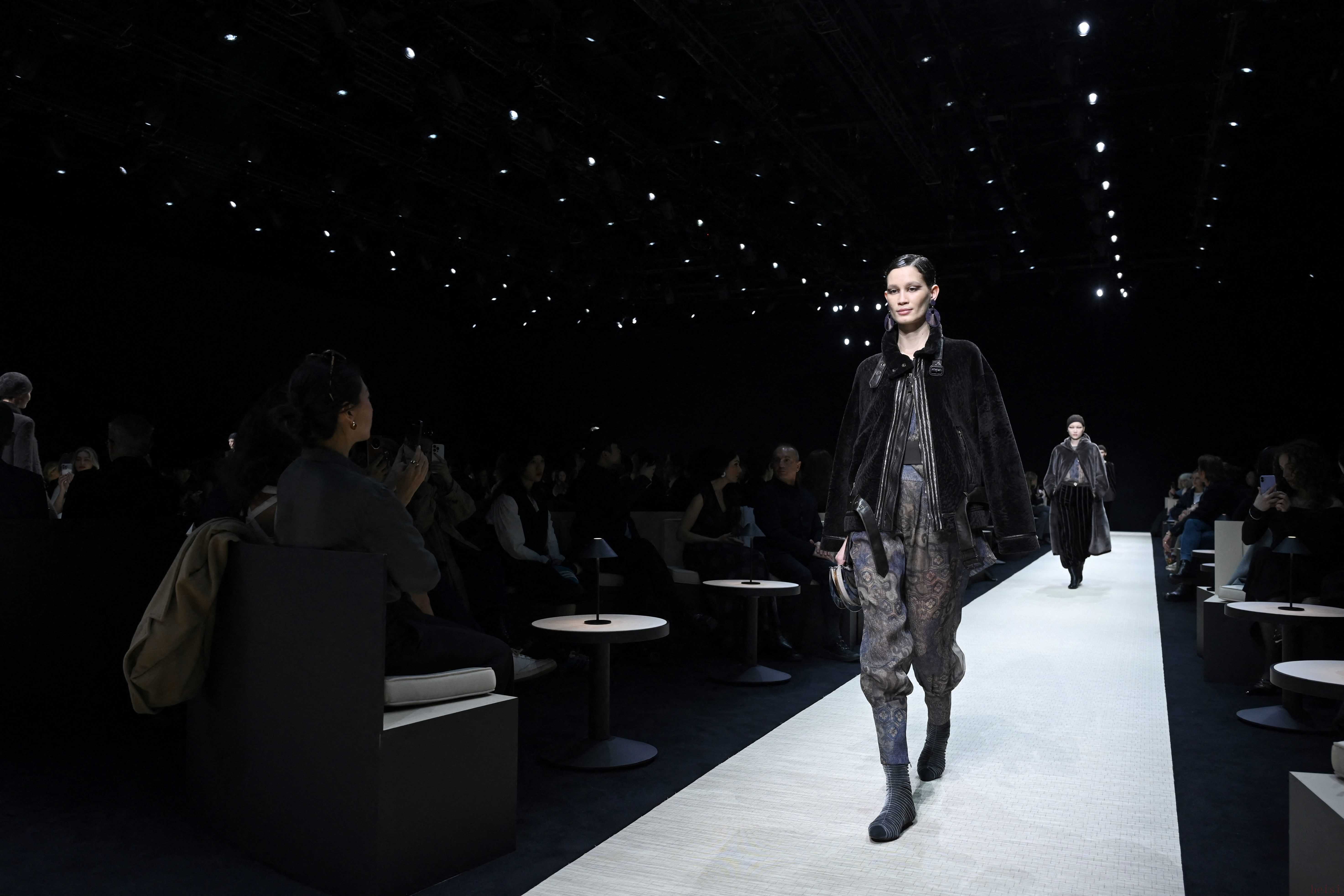 3月2日,模特在意大利米蘭時(shí)裝周上展示喬治·阿瑪尼品牌的2025/2026秋冬新款服裝。新華社/美聯(lián)