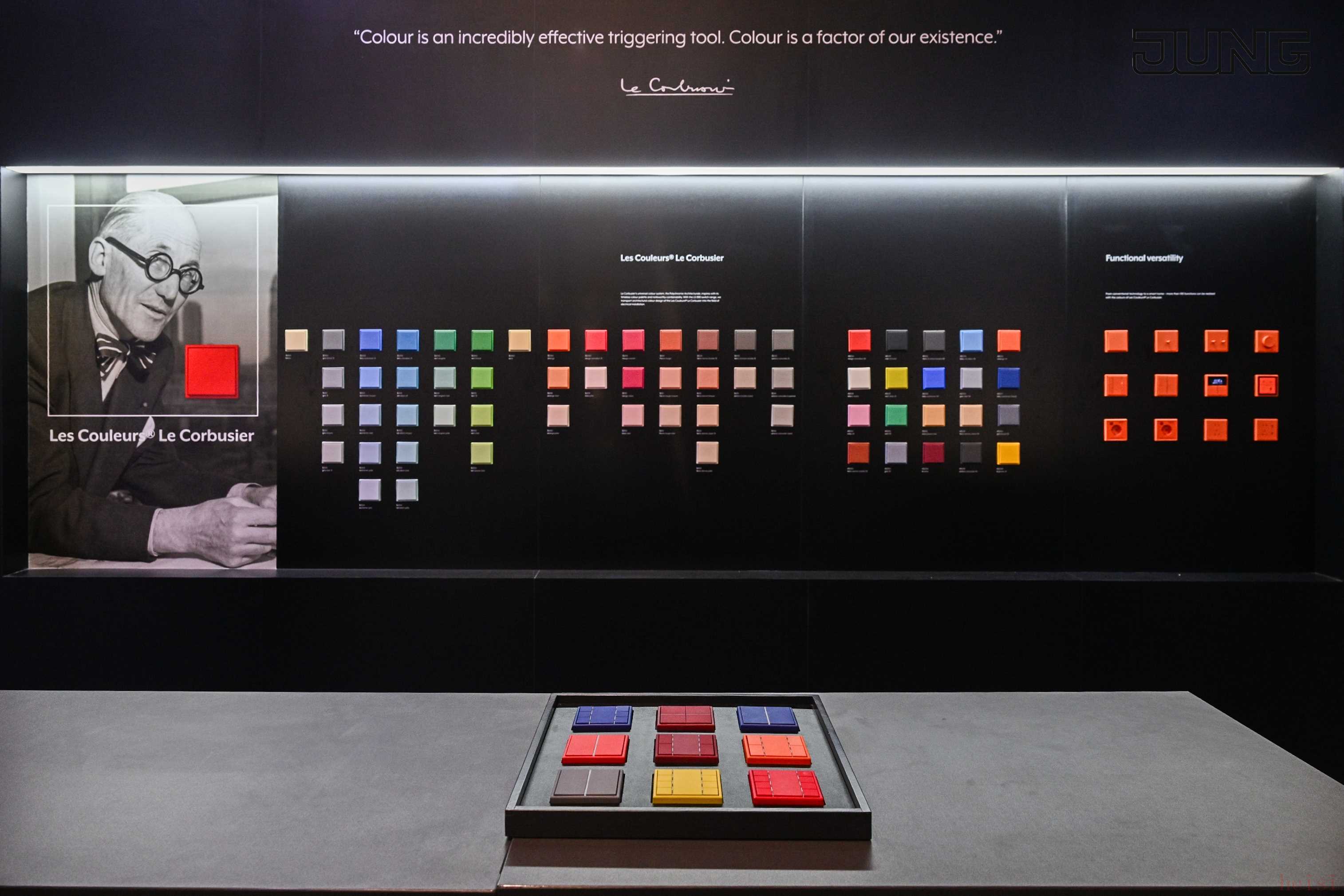 色彩長(zhǎng)桌展示區(qū)以勒·柯布西耶系列色彩產(chǎn)品和純金屬系列面板為展示主線,搭配德國(guó)設(shè)計(jì)典范——福適博(FSB) Les Couleurs? Le Corbusier系列與Dornbracht明星產(chǎn)品,呈現(xiàn)一場(chǎng)兼具理性秩序與感官藝術(shù)的德系設(shè)計(jì)巡禮,激發(fā)觀者的無限靈感與想象。