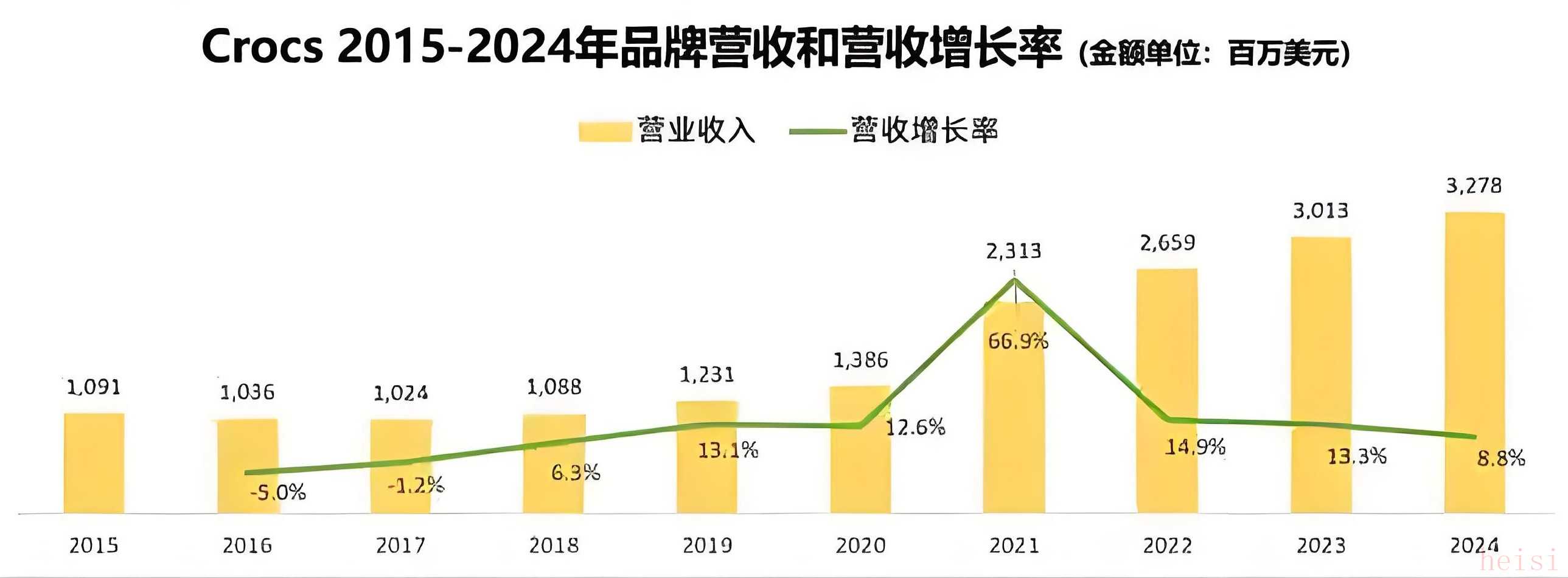 從2024年開始,Crocs這增長勢頭就像被扎破了洞的熱氣球,呲呲地漏氣,肉眼可見地癟了下去。