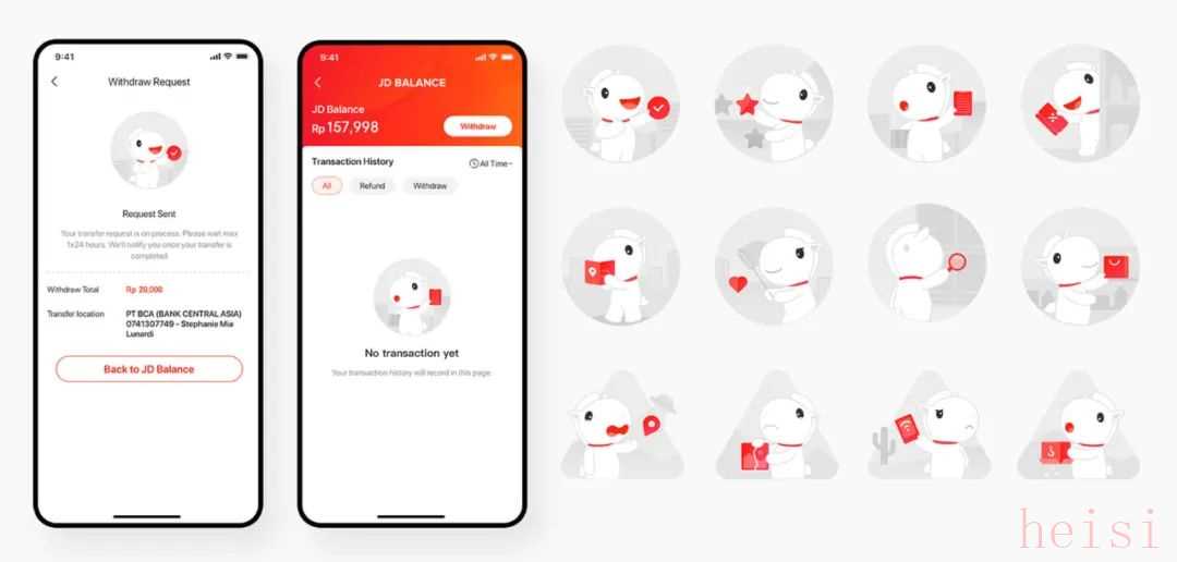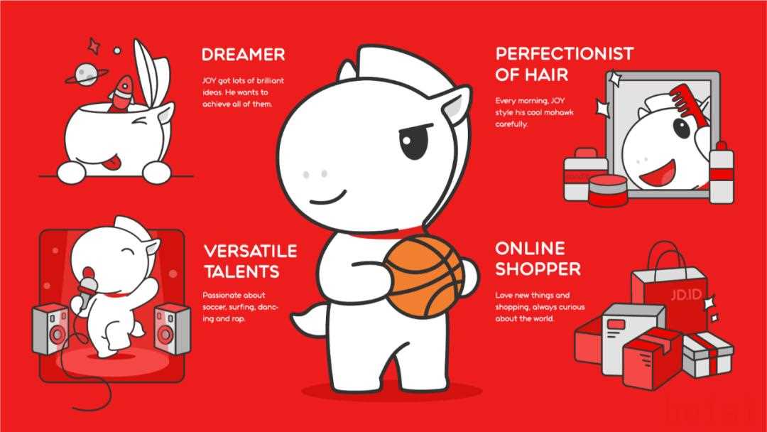 在印尼,馬代表速度、力量、勤懇,這些優(yōu)秀的品格代表了京東人勤勉努力和物流服務。標志形象調(diào)整為擬人的小馬,情緒和感染力更足,張開雙臂擁抱的動態(tài)詮釋了品牌概念,張力、識別度以及與主站品牌的關聯(lián)度有顯著提升。