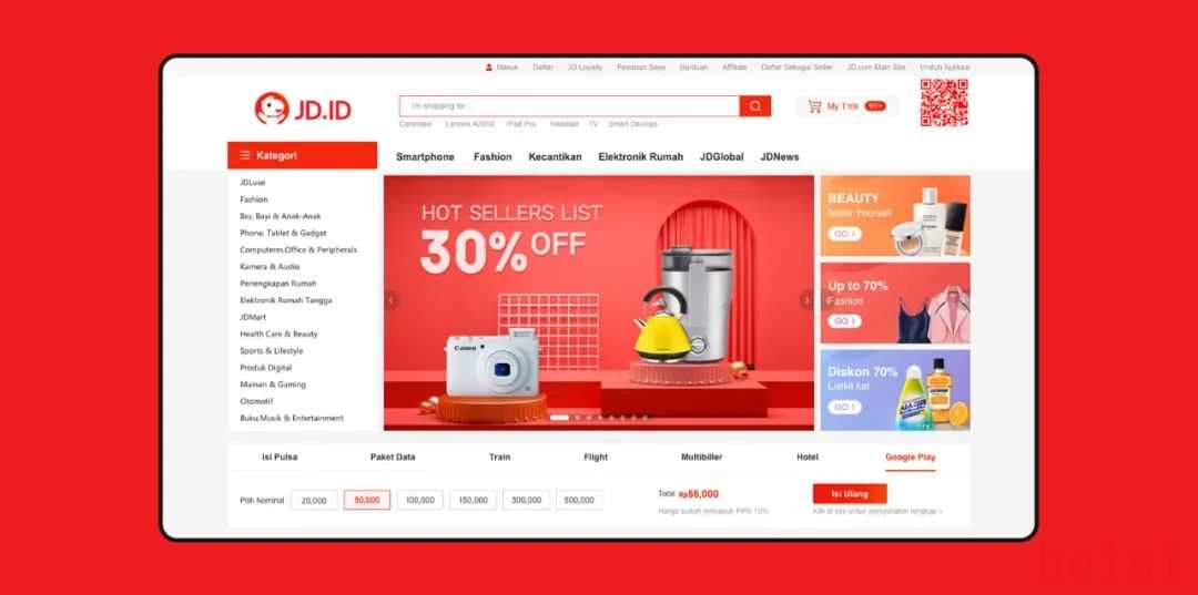 印尼是全球第四人口大國,巨大的市場潛力吸引了眾多資本入局。JD.ID是京東在印度尼西亞的跨境電商平臺,JD.ID進入印尼時間稍晚,于2016年3月正式運營。采用了以自營模式為主,商家入駐為輔的模式。平臺提供高性價比商品,以正品保障為品牌主張,自建物流和倉儲,通過完善的供應鏈提供高質(zhì)量的電商服務。經(jīng)過多年產(chǎn)品迭代,JD.ID已成為本地最具競爭力的電商平臺之一。