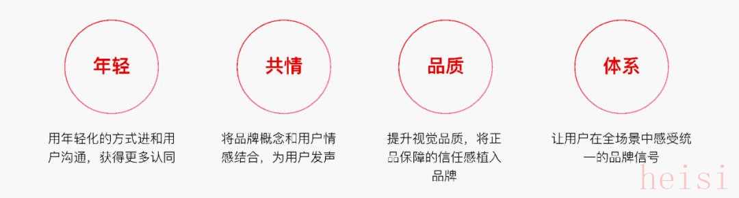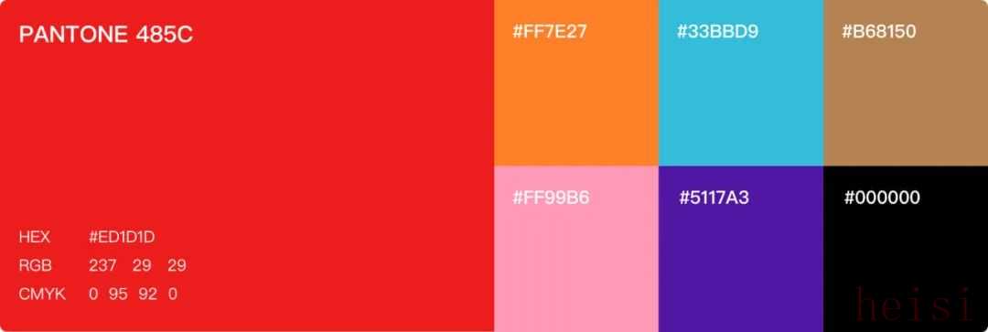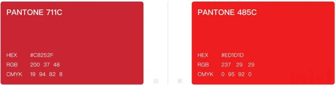 色彩前后對比品牌主色從深紅色升級為更加輕質(zhì)的亮紅色,面對年輕的用戶更具有吸引力,為了幫助品牌充分表達品牌情感,設計團隊也設定了完善的品牌色板。