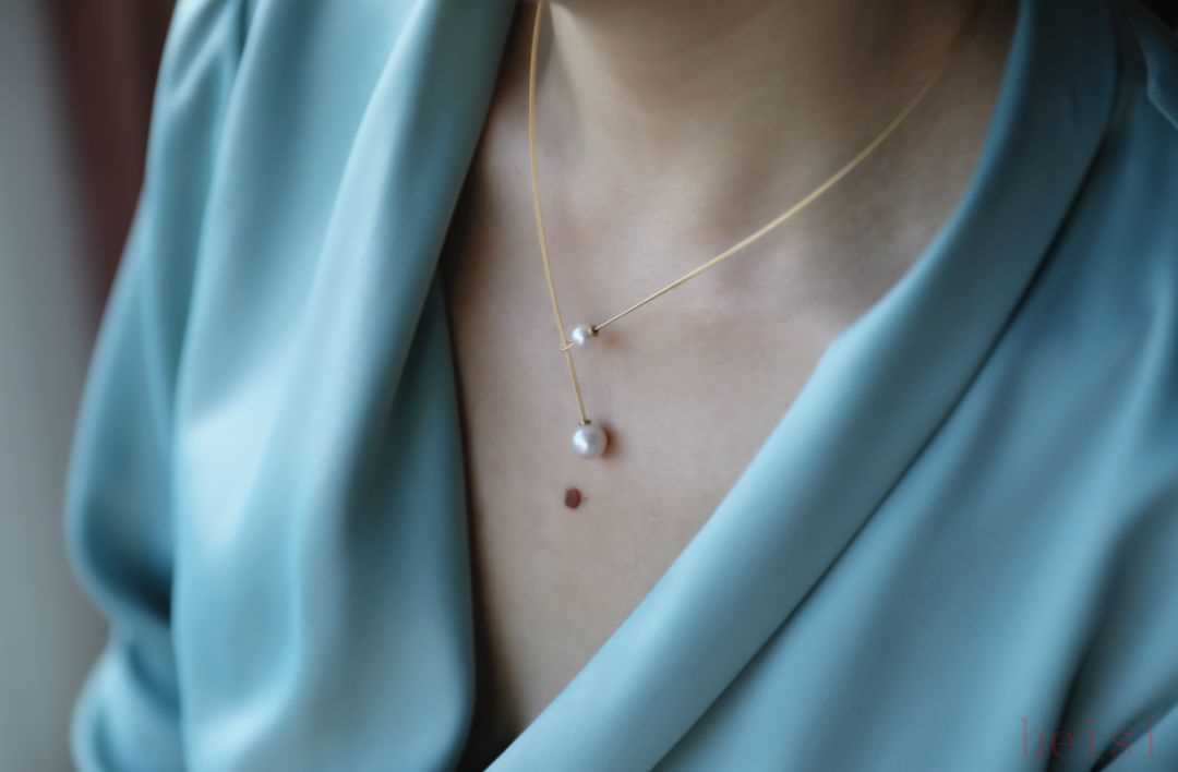 佩戴的時候只要將珍珠這頭穿過圓環(huán)就OK啦,所以整條項鏈并沒有接口,是“一體成型”,而且還可以根據(jù)自己的喜好調(diào)節(jié)項鏈的長度。