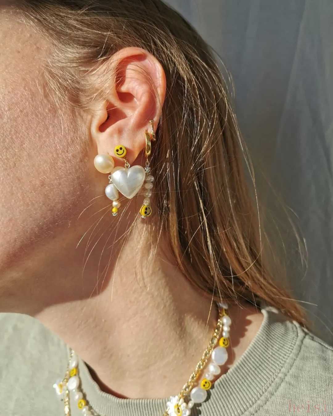 水晶和珍珠這些亮晶晶的珠寶材質(zhì),又加上了愛心、笑臉、小雛菊這樣的可愛元素,像不像我們過去最愛DIY的那種首飾?