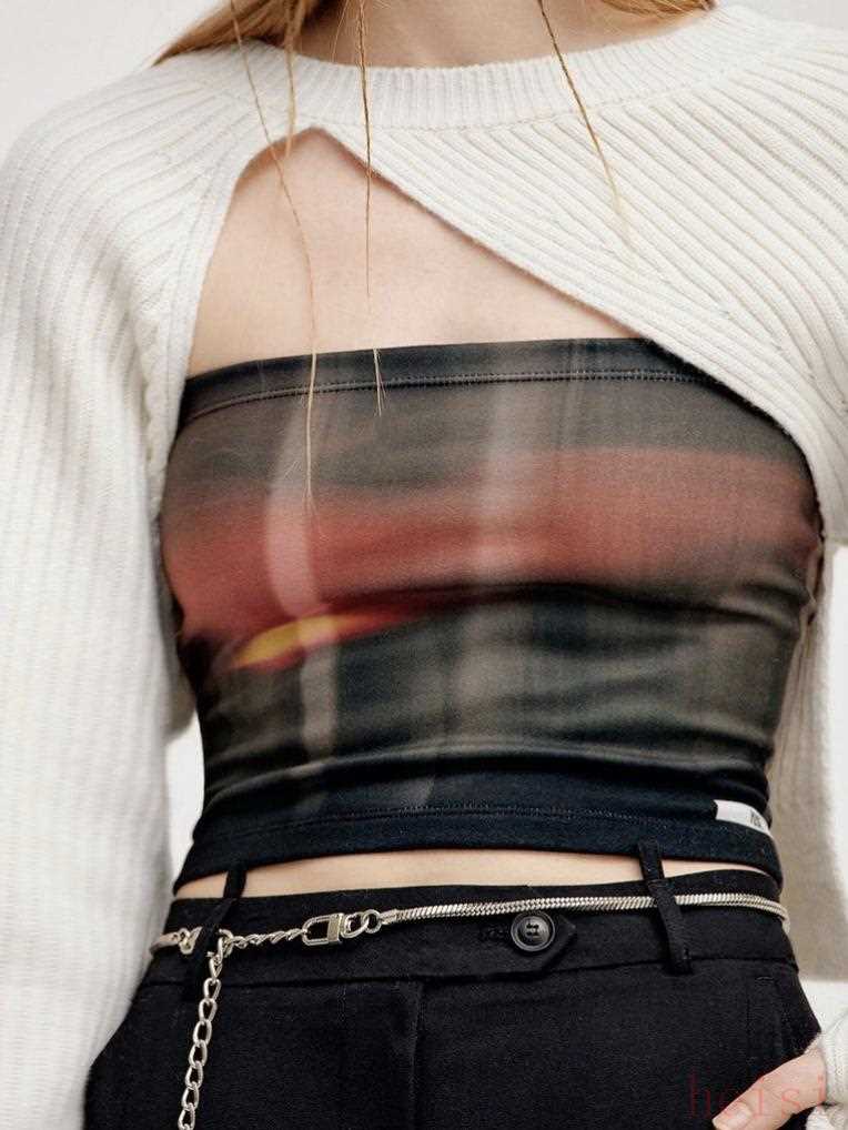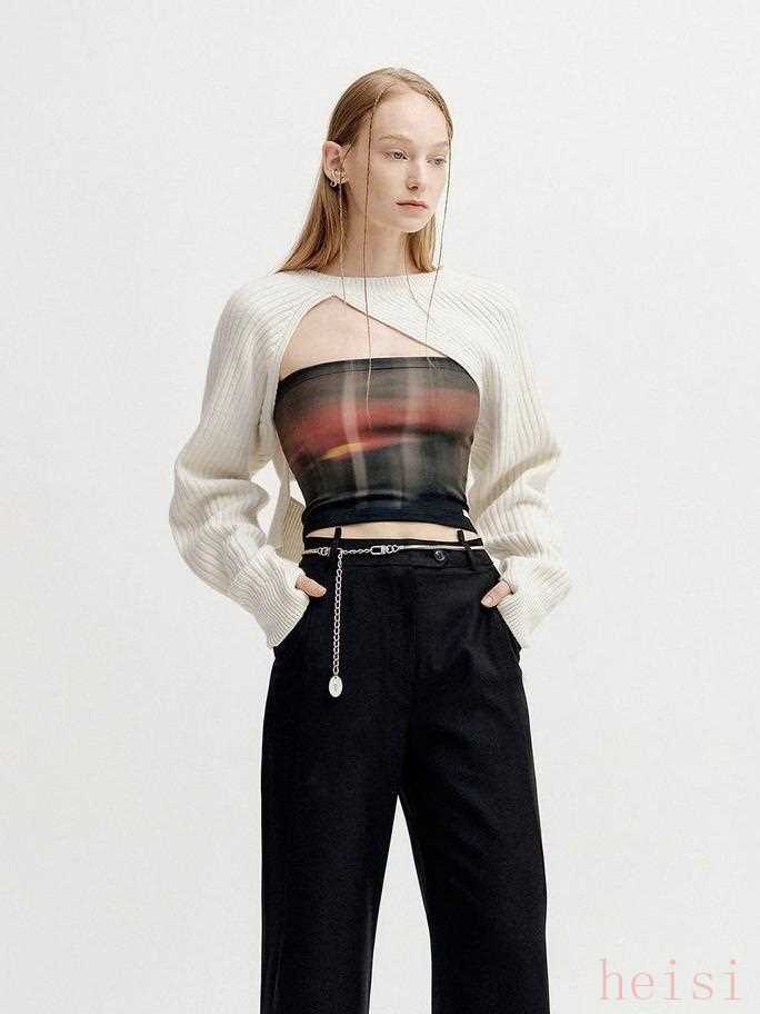 高級、干凈、利落是YUSE的設(shè)計特點,整體服裝風(fēng)格都是那種酷帥中帶著一絲絲小性感。設(shè)計中還融入解構(gòu)元素,設(shè)計感強;貼身抹胸等單品融入自然風(fēng)光的印花,做內(nèi)搭十分搶眼。