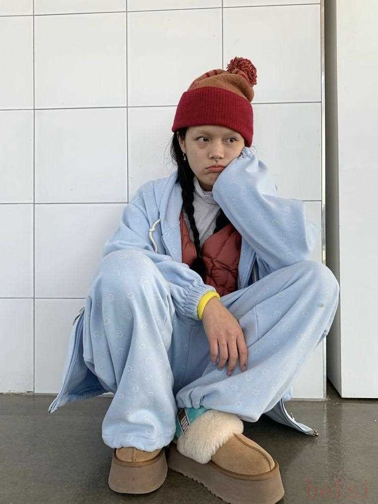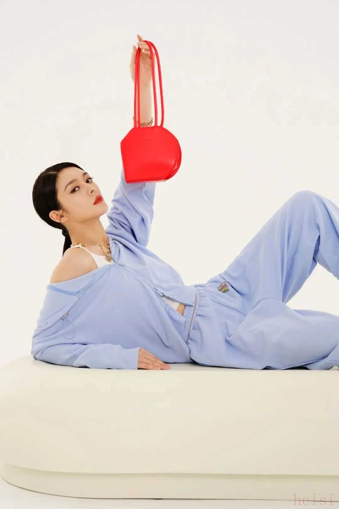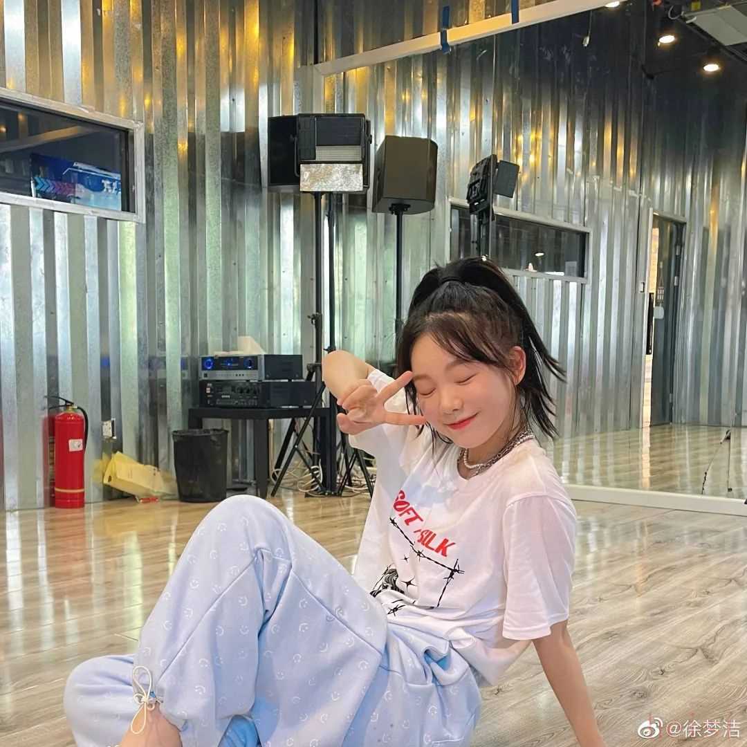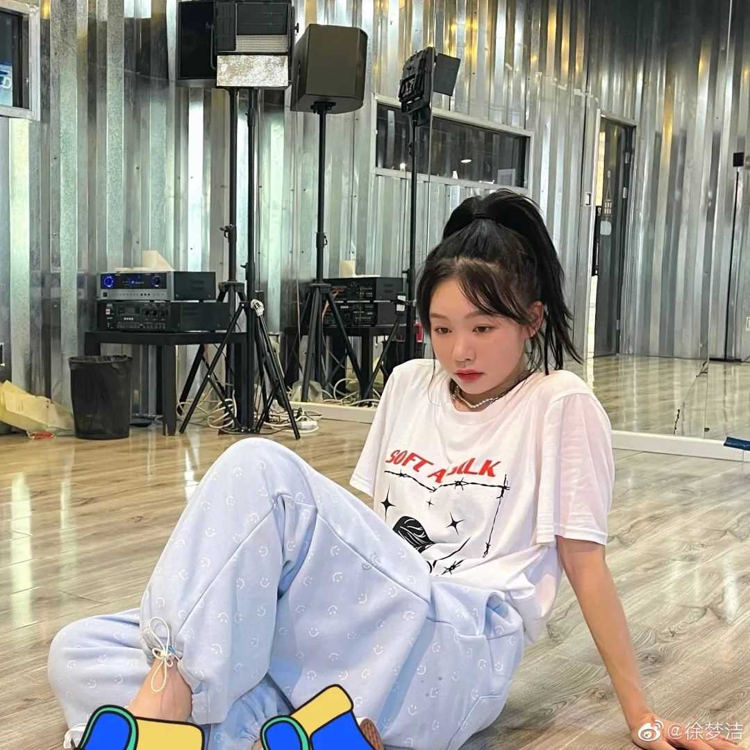 也正是因為它的舒適,minjiena深受愛豆們的喜愛。彩虹甜豆徐夢潔就超愛這套天藍色的運動套裝,蹲練習(xí)室、趕機場...都不能放棄。