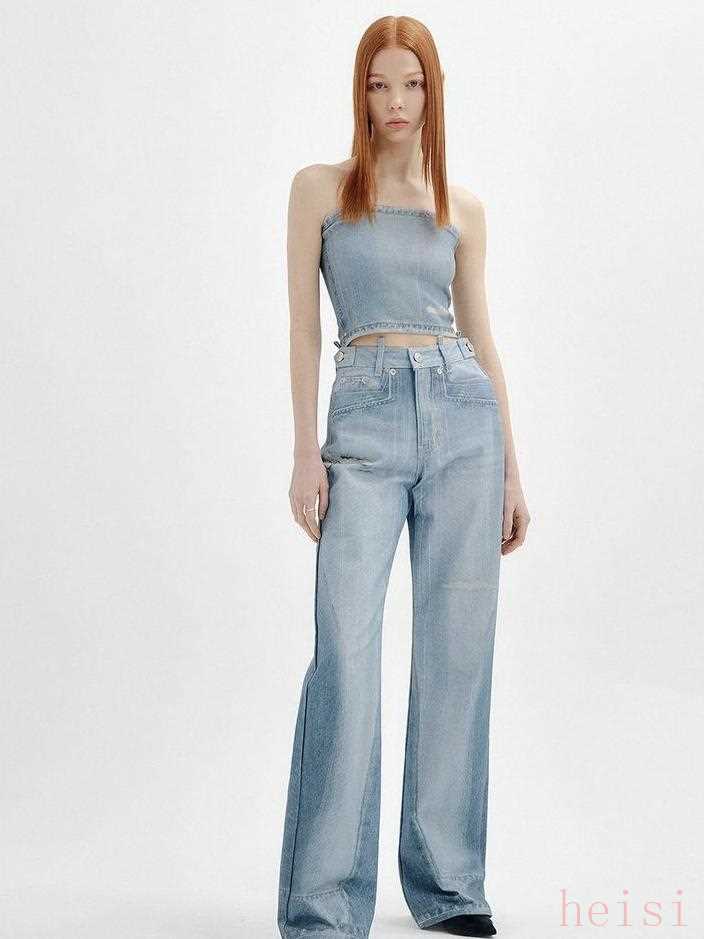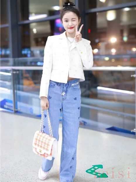 關(guān)曉彤也翻了YUSE的牌子,在她的早春街拍中穿了一套YUSE牛仔,大秀直角肩。藍色牛仔抹胸?同色系闊腿褲,這大長腿,這優(yōu)越的身材比例真的令人羨慕。