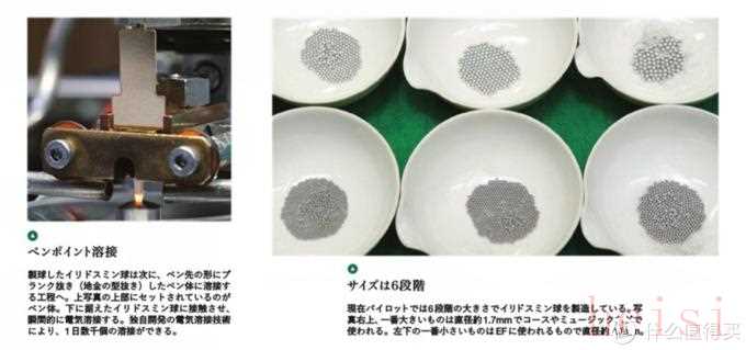 在全日本的所有萬年筆廠中,百樂脫穎而出的一大特點,就是制作銥粒的工藝技術。越來越多的著名萬年筆品牌,都開始購買專業(yè)代工廠的筆尖-銥粒及相關書寫系統(tǒng),自身將核心放在設計與組裝。相比較而言,日本的幾家大廠還是會獨立生產萬年筆中的各個零件,但只有百樂是從金屬開始生產銥粒,而并非選擇采購。