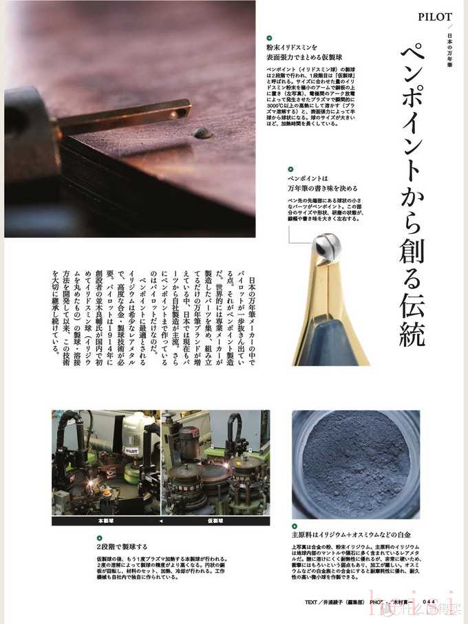 最適合制作銥粒的銥是一種稀有金屬,在實際應用中需要精湛的制球技術和恰到好處的合金工藝來發(fā)揮出它最好的效果。而百樂的創(chuàng)始人并木良輔先生,在1944年開創(chuàng)了日本國內首次鋨銥合金的使用,即將鋨銥礦制作成合金銥粒的相關技術方法工藝。百樂始終沿襲了這個工藝,作為產品特點繼承到了今天。